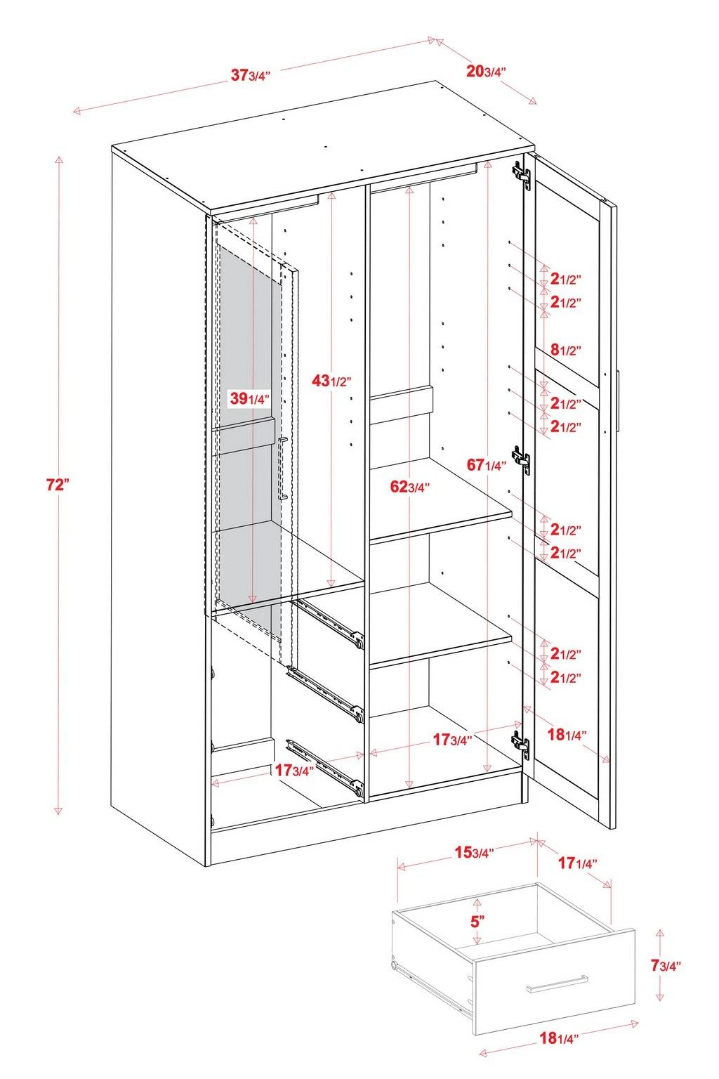 Introducing the Metro Wardrobe Armoire, the epitome of sleek modern design and function. This all-wood armoire can be further customized by adding up to four optional shelves (sold separately). The Metro is made from 100% Brazilian eco-friendly renewable farm grown pine wood that is kiln-dried to prevent splitting and size distortion. With separated and numbered parts, assembly is a breeze and can even be a fun family project.
