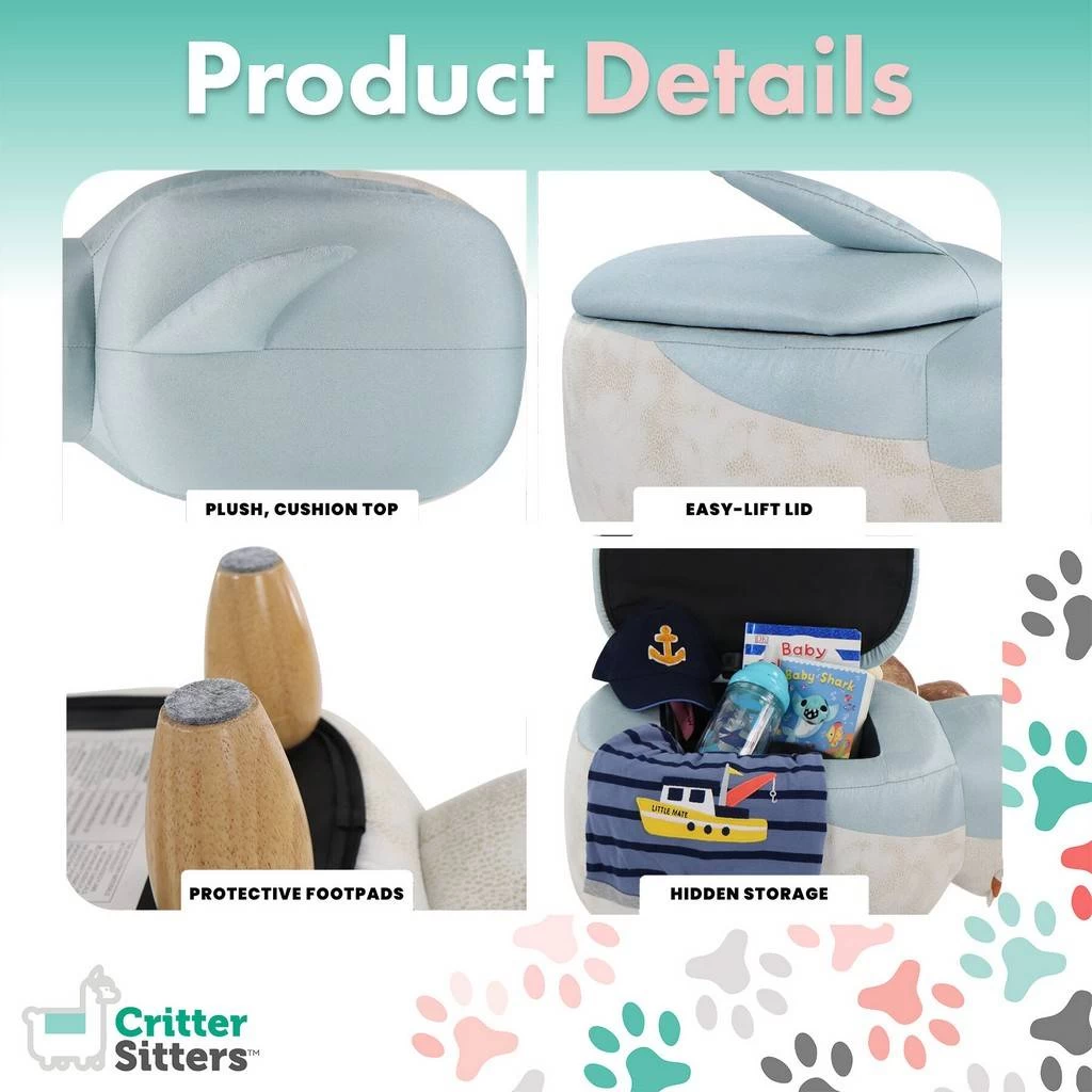 Create a fun and adorable sitting zoo with Critter Sitters! Designed for kids and adults alike, our sturdy animal-shaped storage ottomans are both stylish and multi-functional. They offer a comfortable seat close to the floor without actually sitting on the floor. Four strong, sturdy legs keep this footstool stable and safe. The high-quality fabric, thick padding, and durable stitching offer you a comfy place to rest your feet. Plus, a hidden storage compartment provides the ideal hiding spot for all your treats and treasures. Pair with your favorite chair in any room! This playful hassock works well as a functional accent in a ‘s nursery, toddler’s bedroom, or children’s playroom. This unique stool also makes a great conversation piece in any area you want to add a little decoration. We have a large variety of cute critters to choose from so each member of your family can have their own special friend to love.