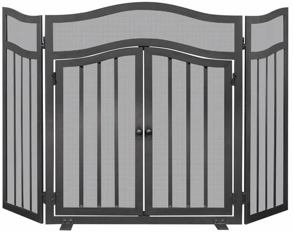 With its traditional black wrought iron finish, sturdy wrought iron frame and arched detailing, our Uniflame® 3-panel screen, by Blue Rhino®, will compliment any . Two easy access doors make tending to fires simple and convenient. With it’s large size this 3-panel screen is ideal for accomodating larger fireplaces.
