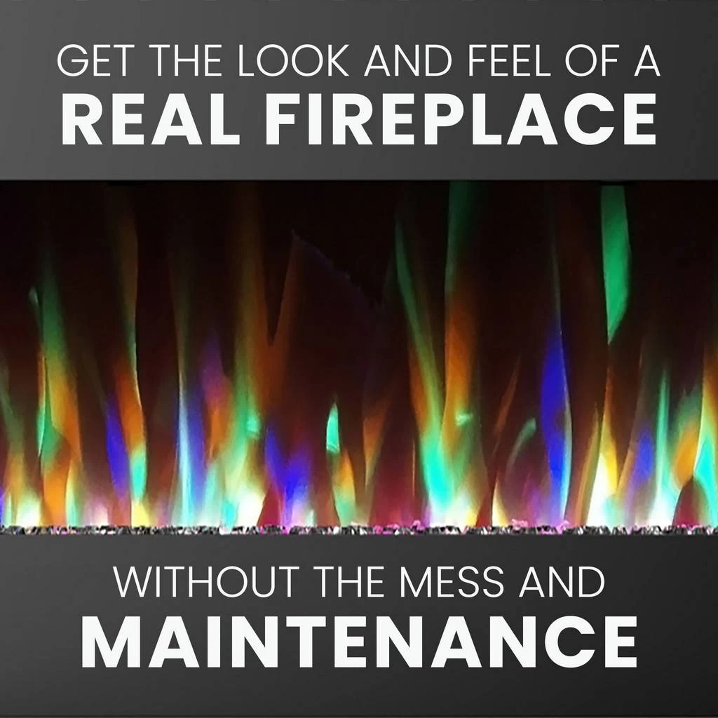 Enjoy the perfect ambiance for your home with Cambridge’s recessed, wall mounted electric fireplace. Our modern and sleek design is perfect for any home and offers a LED color changing display to fit seamlessly into your home’s aesthetic. The flames can operate with or without heat, which makes it perfect for warmer seasons and year-round use. A convenient remote control is included so you can easily adjust the settings from anywhere in the room. Our fireplace is easy to install and comes with the options to be wall mounted or built into the wall. No more hassle of a real fireplace with our Cambridge Electric Fireplace. Get the realistic flame effect of a real fireplace without all the maintenance.