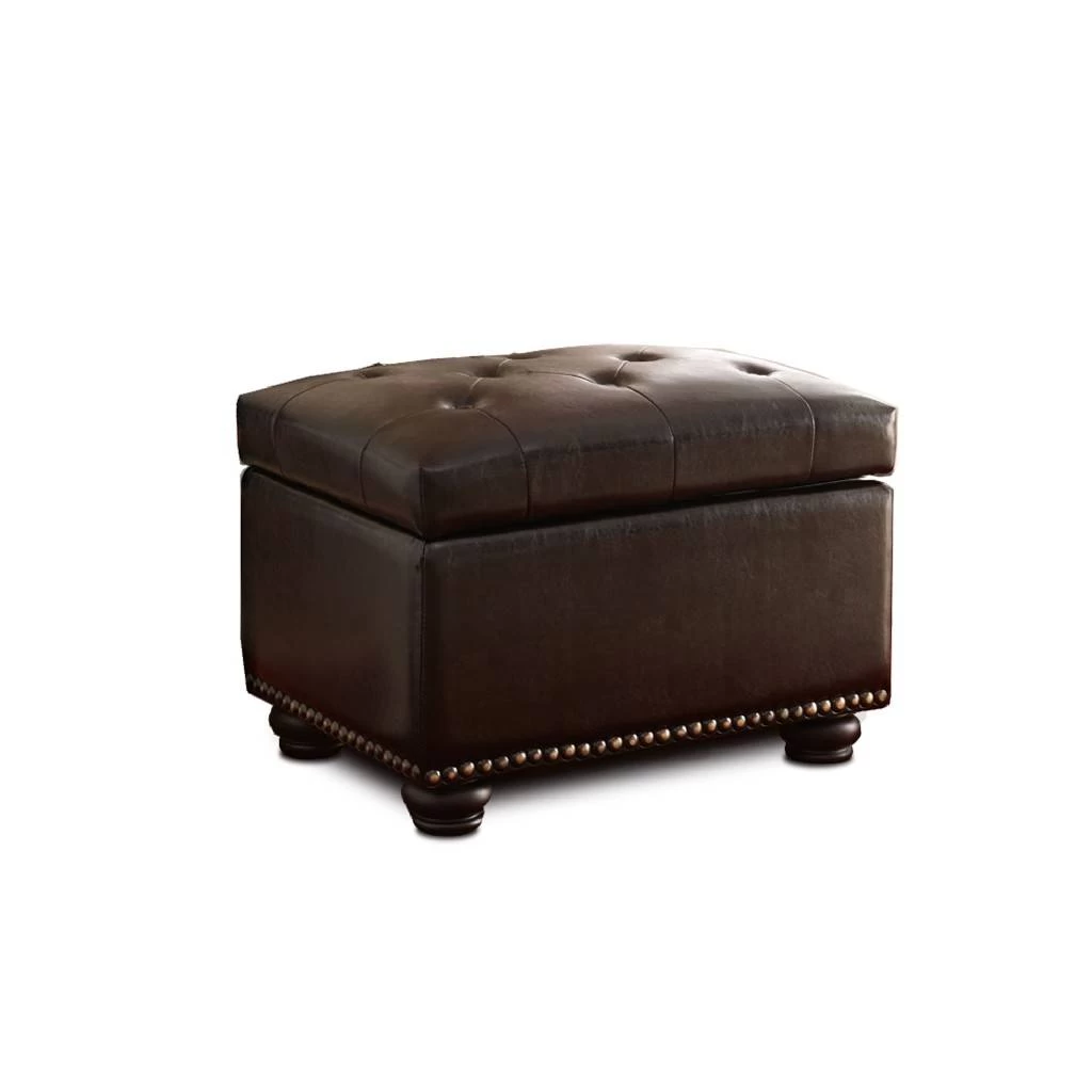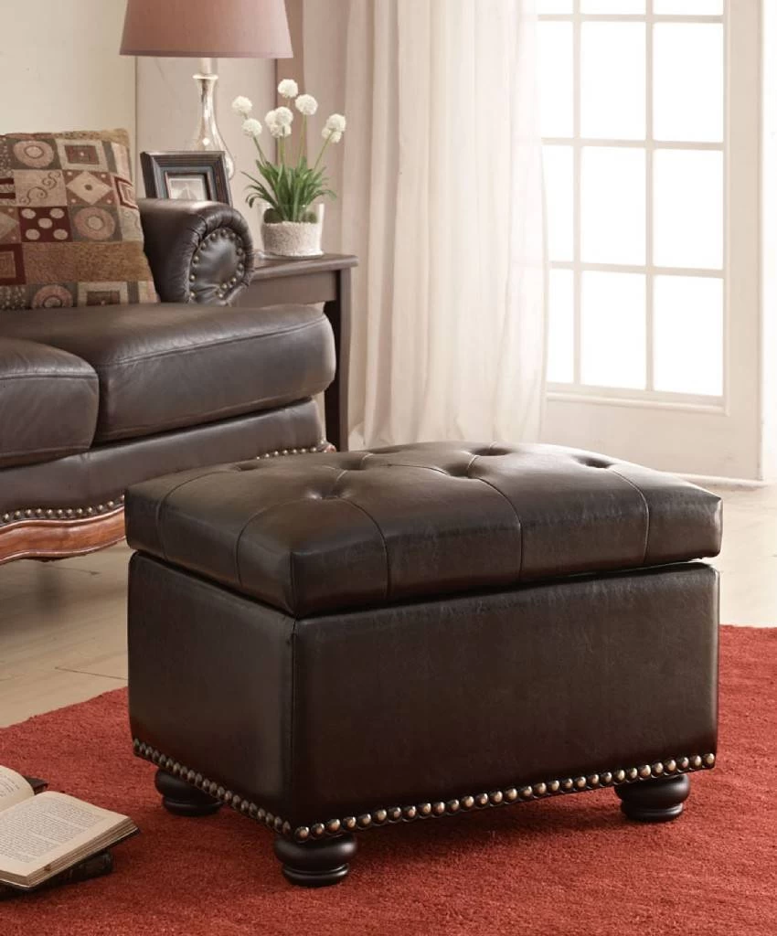 Designs4Comfort™ 5th Avenue Storage Ottoman by Convenience Concepts, Inc. This elegant ottoman is accented with beautiful nail head beaded trim along the bottom. Also features Button Tufting on top of the extra padded hinged lid, and attractive turned solid wood feet.