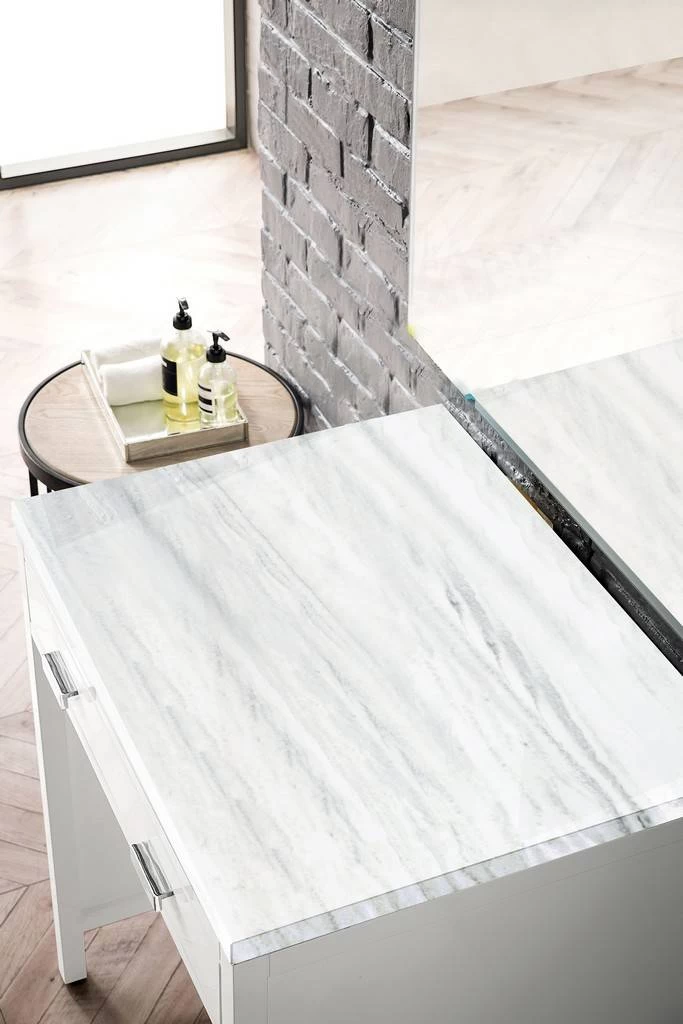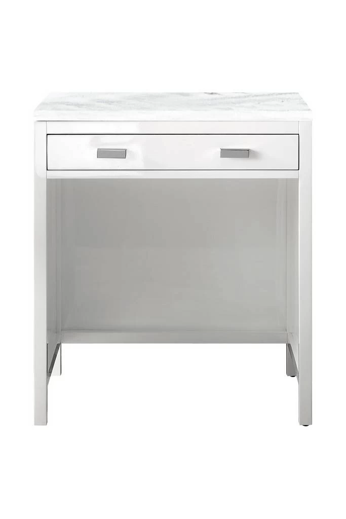 The Addison Collection 30-in. Free-standing Countertop Unit by James Martin Vanities comes in a glossy white finish on parawood with a solid surface top giving you a fresh take on Shaker-inspired design with a look of luxury. Handcrafted and gender-neutral, it fits effortlessly into modern or transitional rooms. This vanity countertop keeps your things neat and tidy thanks to its large drawer and generous vanity top that will easily hold a laptop, home or toiletries. Adding a cool contrast to the rich wood with burnished nickel hardware, the 3-cm solid surface Arctic Fall vanity top displays horizontal grey veining giving you the look of expensive marble without the cost.