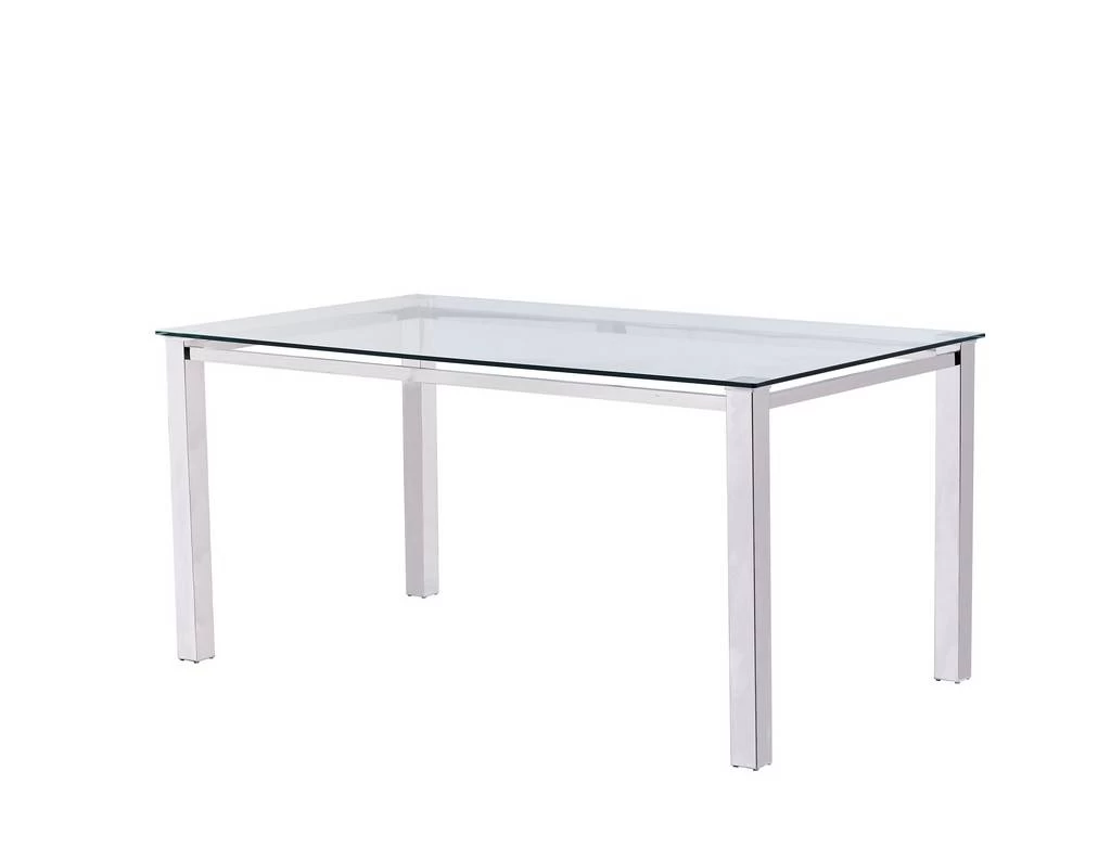 Include this modern dining table in your contemporary abode. This sophisticated style mixed with minimalistic touch adds a cunning edge to your dining room design. The table is made of tempered glass with chrome. Popular style with a sudden twist!