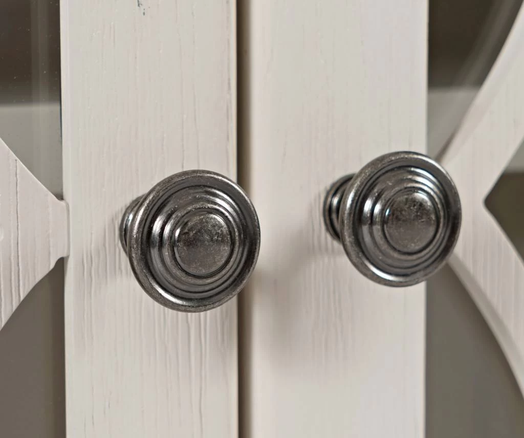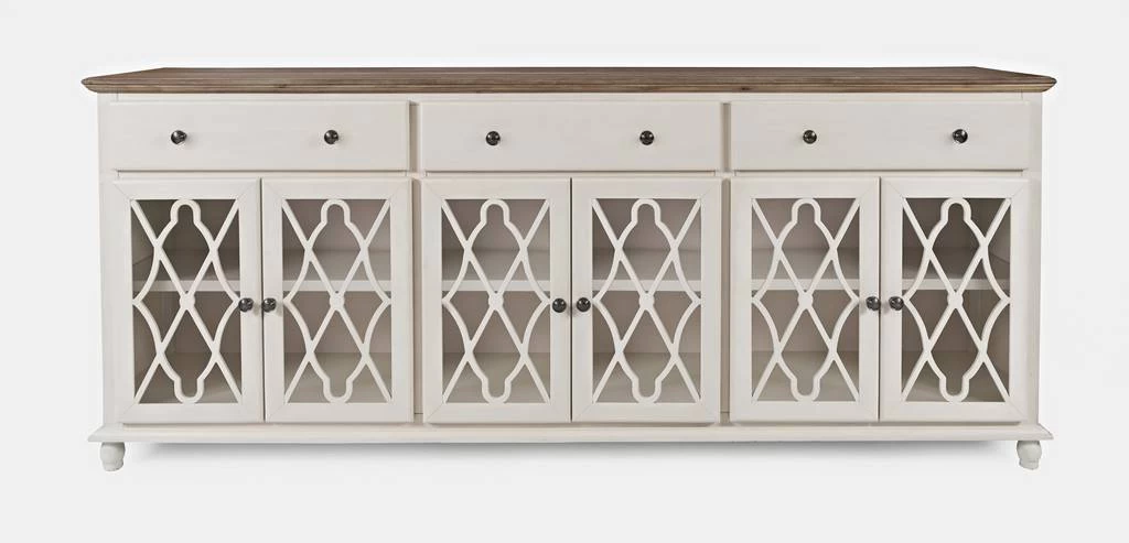 The Aurora Hills collection is a beautiful group of classic accents that will evoke memories of a beach-side bed and breakfast with classic relaxed style. Standing 86” wide by 35” tall, the details on this 6 Door Accent Chest are a true standout with six wooden doors outfitted with tempered glass, a stylish shaped silhouette, and brushed metal handles. A spacious shelf sits inside the cabinet, and the hand-turned legs are a beautiful complement. Ideal for displaying treasures in any room in your home, our Aurora Hills collection is available in 3 sizes and in three finishes (Blue, White and Grey).