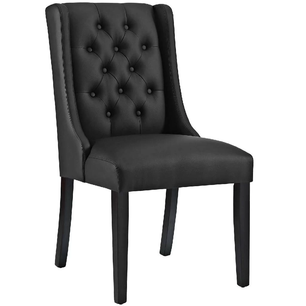 Bestow splendor with Baronet. Charm and elegance adorn this luxurious button tufted dining chair complete with sleek curves and dignified form. Featuring dense foam padding, fine vinyl upholstery, a solid wood frame, and non-marking foot glides, Baronet is a stylish dining chair perfect for the modern home. Set Includes Two – Baronet Dining Chair