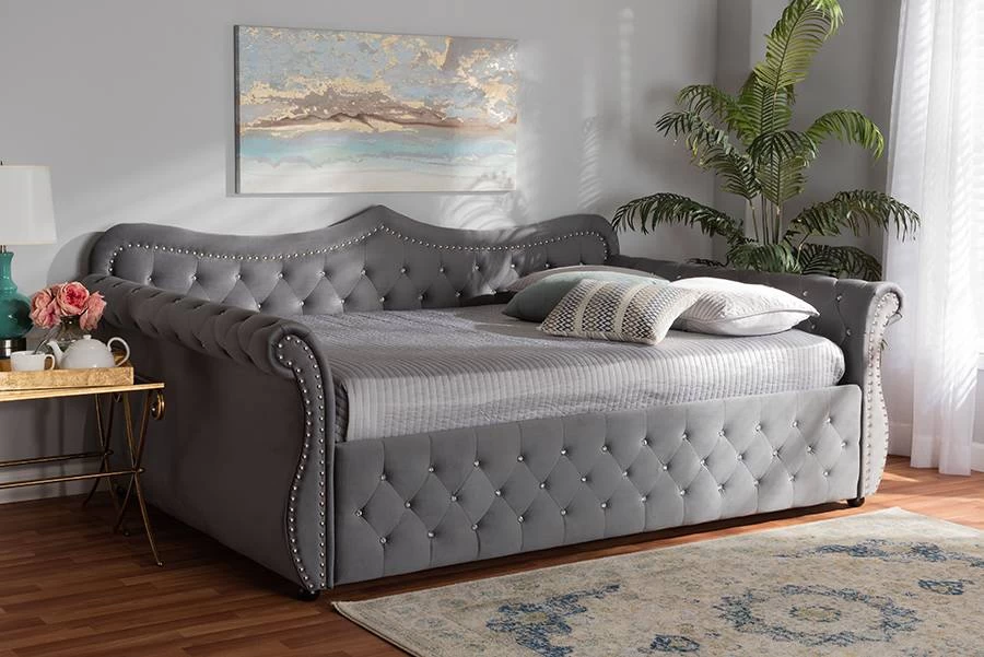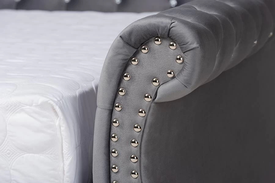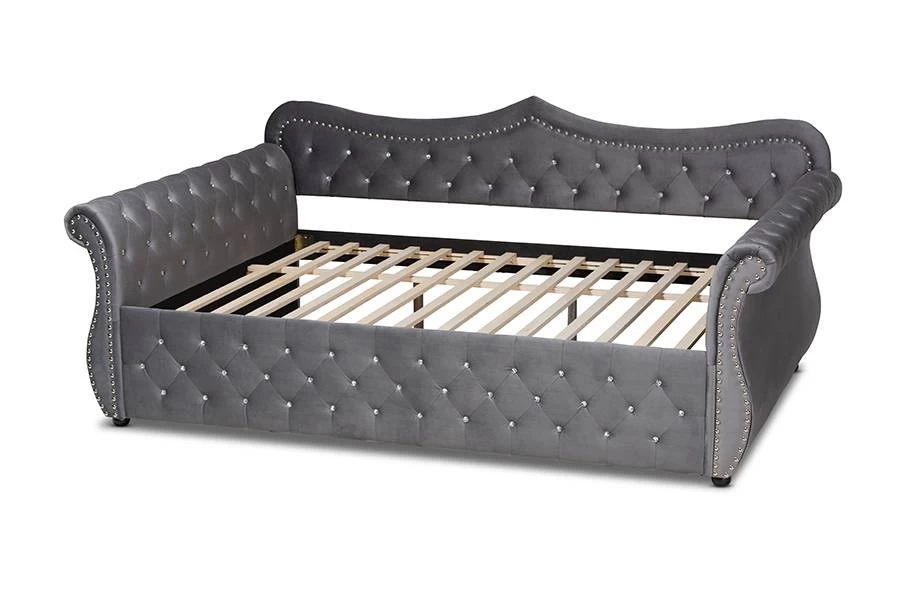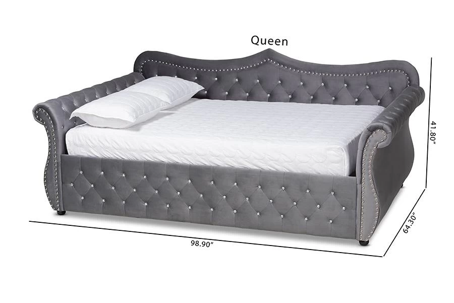 Abbie-Grey Velvet-Daybed-Queen Features: