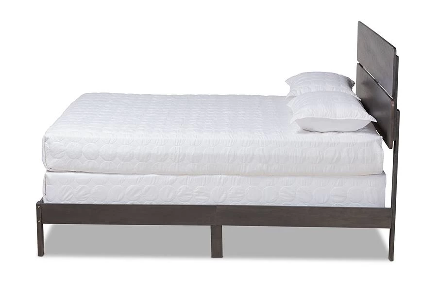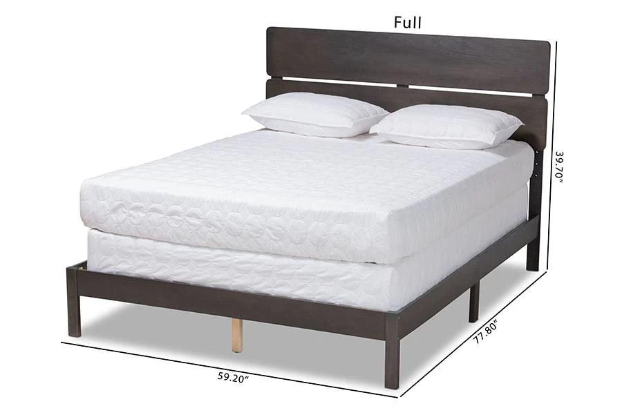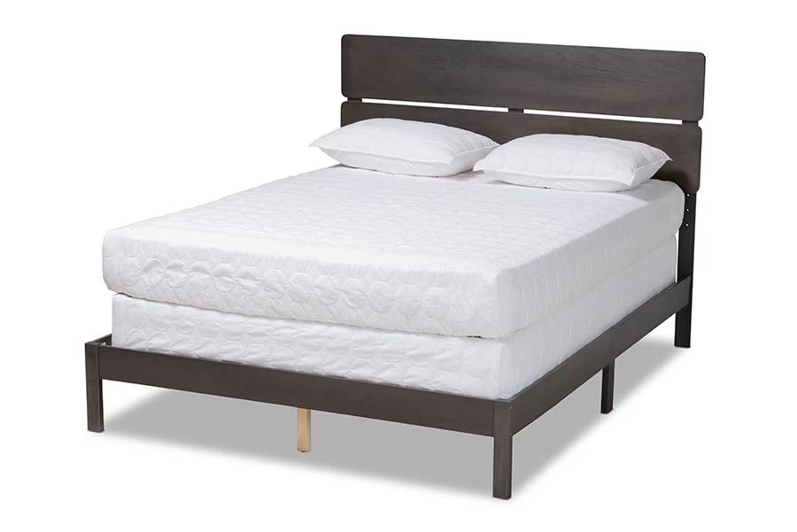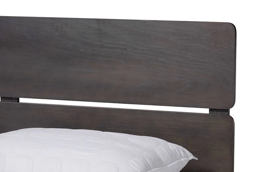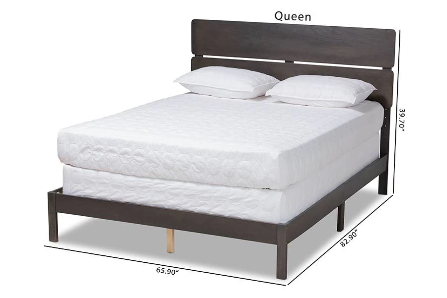 Rich wood tones bring tranquil comfort to the with the Anthony bed. Made in Malaysia, the Anthony features dark grey oak finished wood that provides the room with a sleek, modern aura. The bed requires assembly and a box spring to function properly. Fine craftsmanship is displayed by the slatted headboard which allows light to flow through, providing smaller spaces with a more open feel. Turn your bedroom into a stylish and comfortable get-away with the Anthony bed.