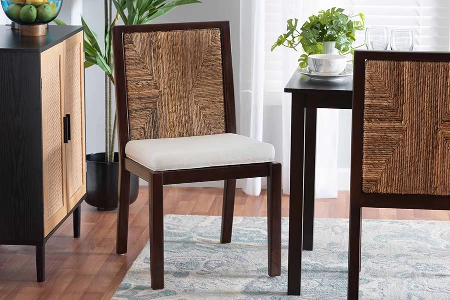 Baxton Studio Joana Modern Bohemian Dark Brown Mahogany Wood and Natural Abaca Dining Side Chair – 95-Joana-Mahogany-DC