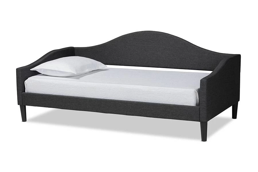 Subtle and laidback in its design, the Milligan daybed brings tranquil comfort to any space. Made in Malaysia, this bed is comprised of a sturdy wood frame padded with plush layers of foam and upholstered in smooth fabric. Smooth curved back creates an elegant silhouette while sloped arms encourage carefree relaxation. The Milligan requires assembly and utilizes wood slats for mattress support, eliminating the need for a box spring. Tapered legs complete the look, making the Milligan daybed a remarkable addition to the modern home.
