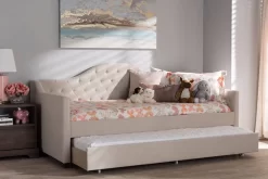 Boho Daybed – Trundle Bed – White Finish – Linen Stone Mattresses – Kodiak Furniture BODBTBWHTMLSTN4