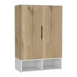 Rural Nightstand, Two Legs, One Shelf, White And Light Oak Finish – We Have Furniture WHF473