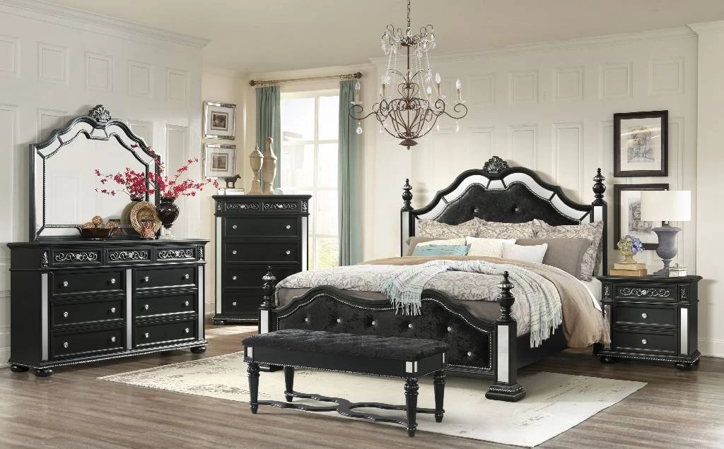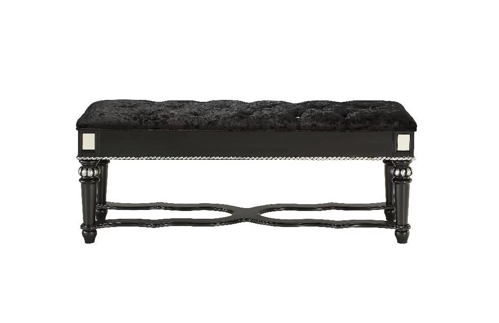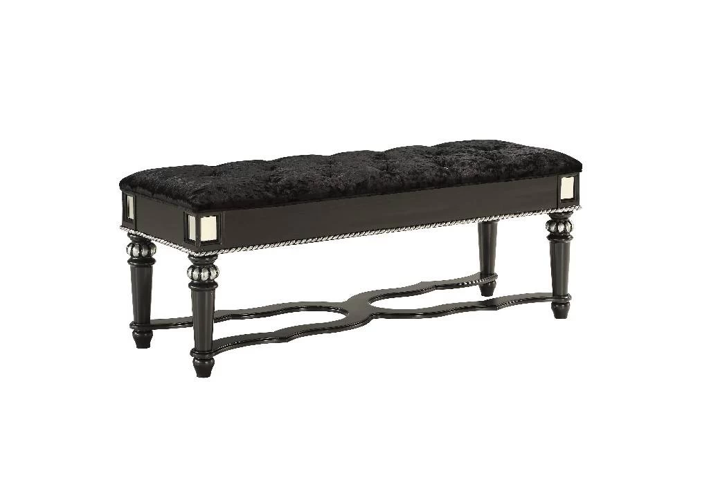 The Diana Bench has an heirloom appeal, the beautiful black finish enhances the character of the item. The Intricate carvings, tufted detailing and heirloom appearance add a touch of style to your . Queen Anne style feet are just an addition to the many qualities this bench possesses you will definitely sleep better knowing you chose a quality product!