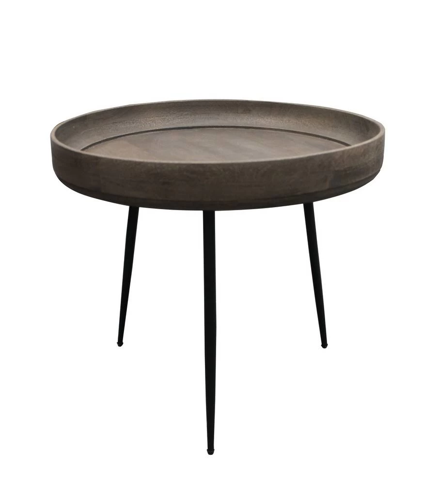 The Benedict Jay side table boasts a unique bowl shape that is spacious and stylish. It is constructed from solid Acacia wood. The table sits on iron legs which make it sturdy and strong. It is a welcome addition and the perfect accent to your living space. It is sure to catch the eye and be a conversation starter.