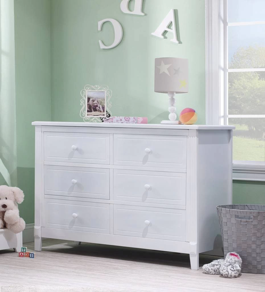 Six spacious drawers provide excellent storage space for organizing your clothes and nursery essentials. Drawer fronts are decorated with grooves and small rounded child-safe knobs. Berkley drawers are built to last.