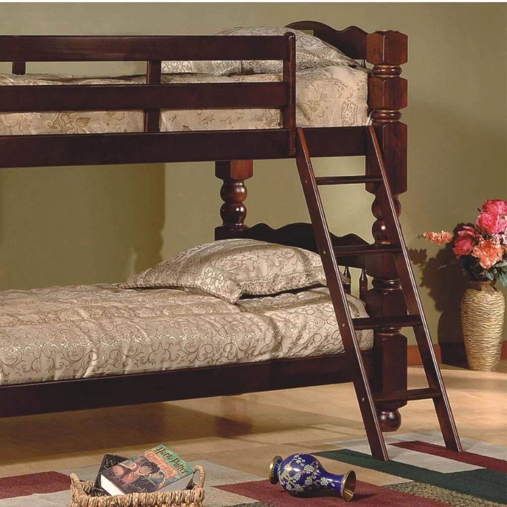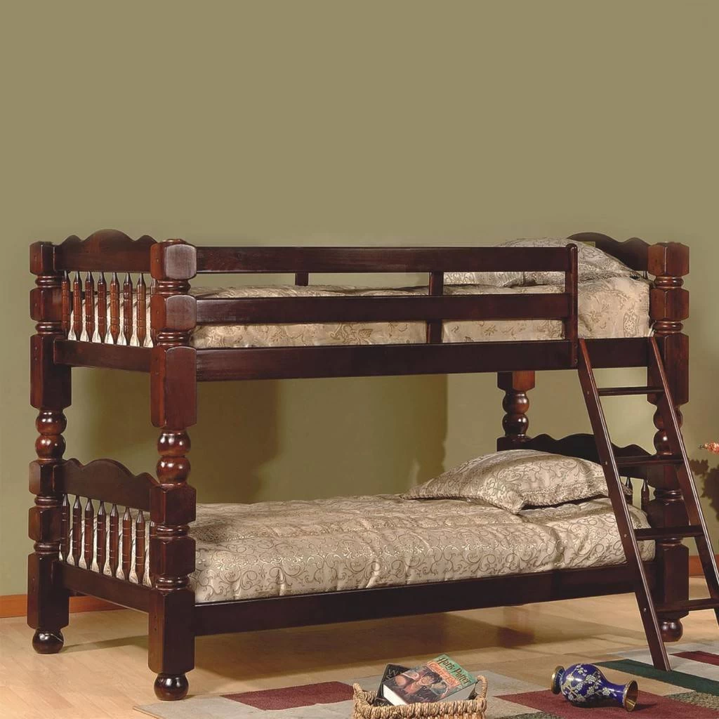 The Better Home Products Andrei Twin Over Twin Solid Wood Spindle Bunk Bed is a trusted family favorite. Crafted from solid pine wood, this traditional bunk bed is sturdy and exceptionally stylish. Features full length guardrails and an integrated ladder, for safety and easy access to the top bunk. A great solution for space-saving needs that both parents and children alike will love. Each bunk can support up to 225 pounds. Available in Natural, Tobacco and Mahogany color options. This bunk will be delivered in 2 boxes. Please wait patiently for both boxes delivered before assembly.