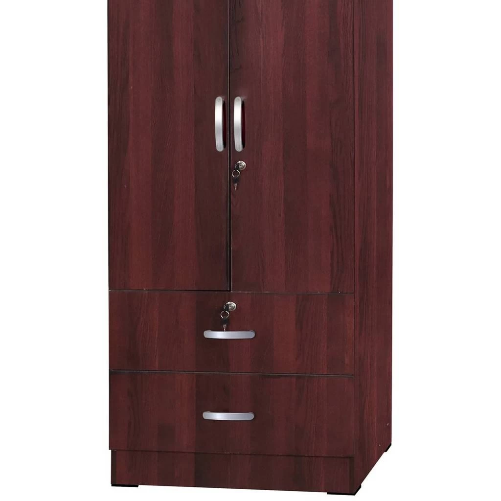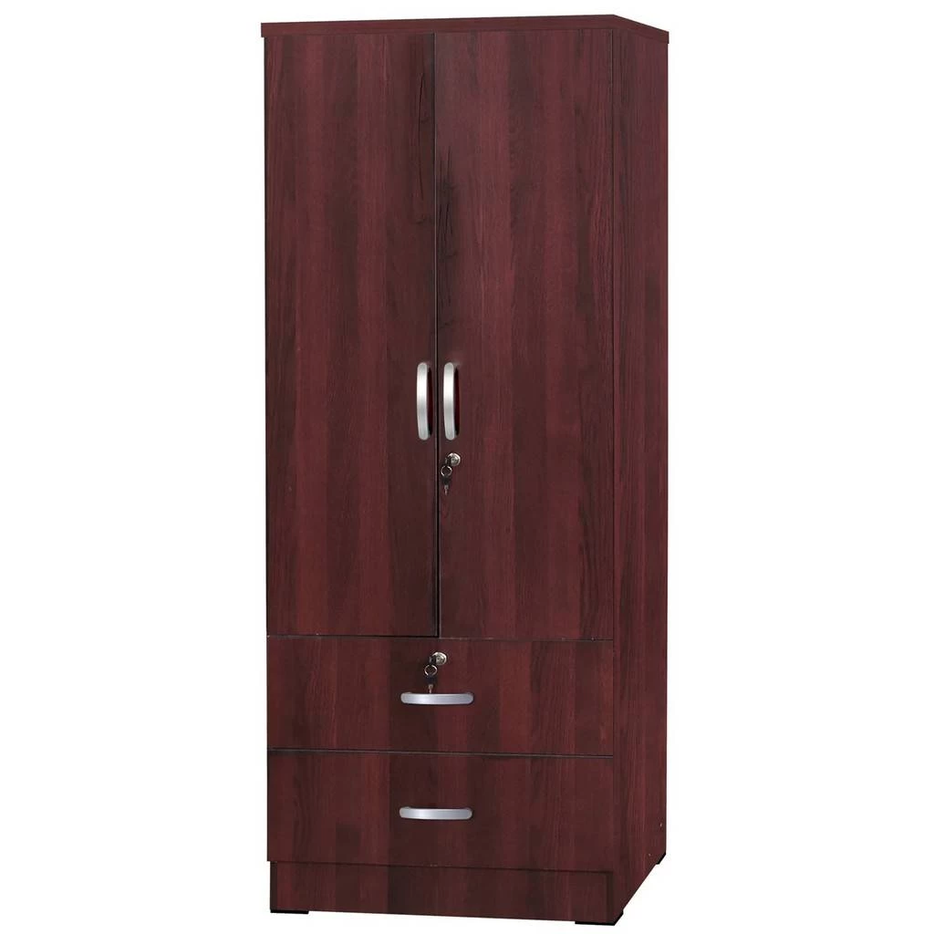 Elegant and versatile, the Better Home Products Grace Wood 2-Door Wardrobe Armoire with 2-Drawers is a must for any space-conscious . Heavy duty garment rod behind lockable two doors is perfect to hang your blazers, coats, and shirts. Two full-size drawers below the cabinet provide even more storage space to help keep you organized. The drawers come with metal runners and safety stops that will keep the drawer firmly in place when it is fully opened. Crafted of sturdy and fade resistant melamine laminated engineered wood and available in Beech (Maple), Black, White, Mahogany, Tobacco and Gray finish options – this armoire blends well with both traditional and contemporary decors. Assembly required.