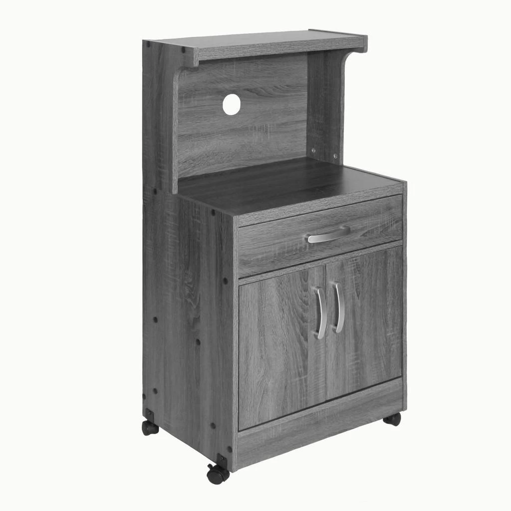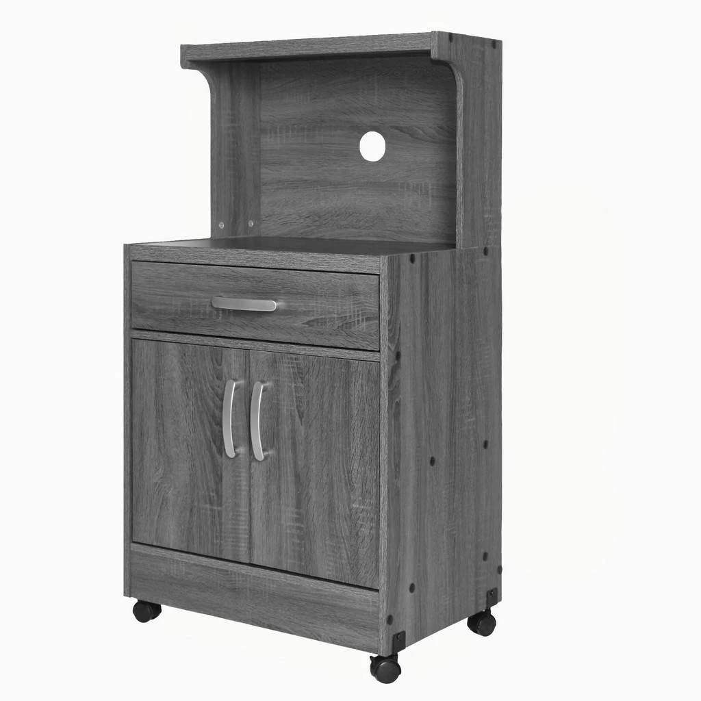 Equipped to provide ample storage and transitional design, the Better Home Products Shelby Kitchen Wooden Microwave Cart is the ultimate acquisition for your small kitchen space. The lower one inner shelf cabinet offers housing for pots, pans, dishes, or dry goods while the centrally located drawer accommodates utensils and whatever miscellaneous paraphernalia that always seem to end up in the kitchen! Shelby’s countertop offers large open space for your microwave or air fryer while the backdrop’s opening provides easy access to electrical outlets. Top shelf offers handy access to cookbooks and savory ingredients. Shelby is crafted with sturdy laminated engineered wood, which ensures strength and durability. The lockable wheels allow for easy mobility if necessary. Available in multiple finishes – Mahogany, Gray, White and Tobacco – choose the one that blends with your existing interior.