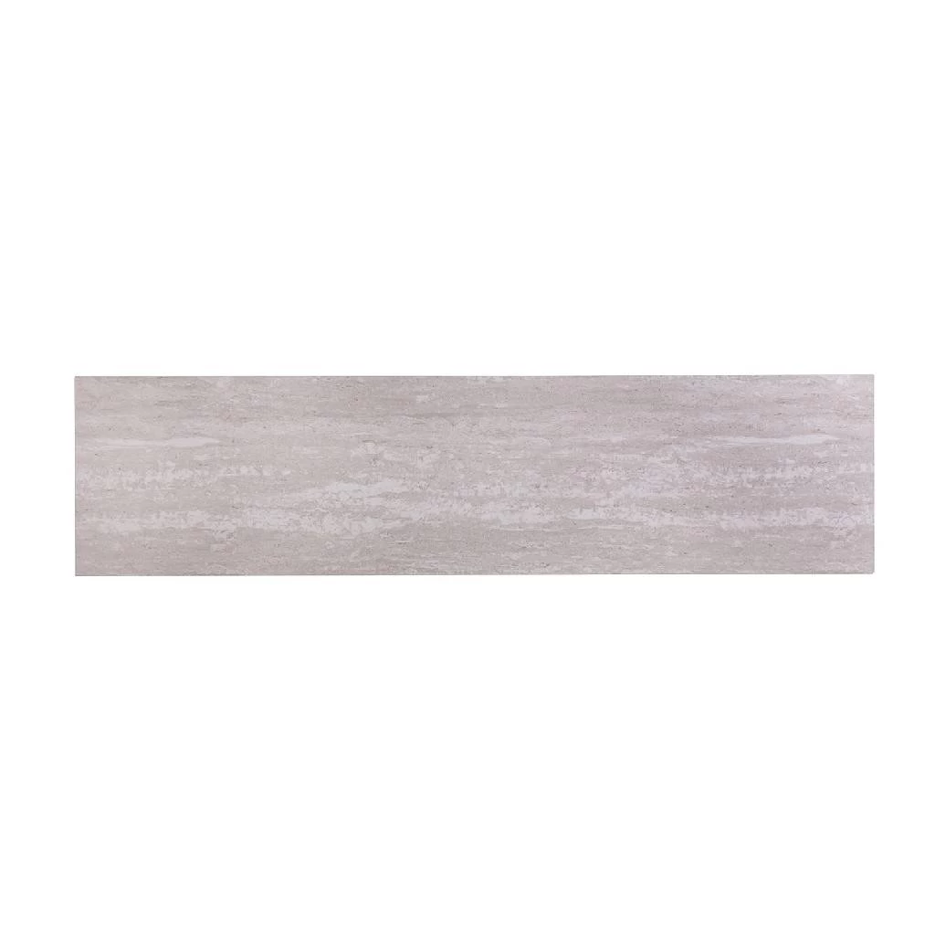 Raise your glass to a style soiree with this faux stone console table. A lifelike simulated travertine top complements a champagne finished metal frame, adding a pop of pizazz to your living area. Slide this stunning sofa table into your or open concept space for a fabulous 1920’s style statement.