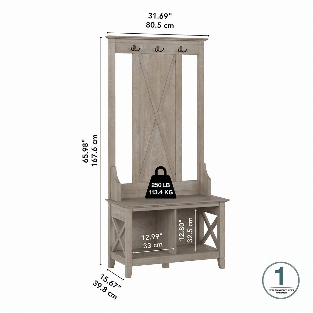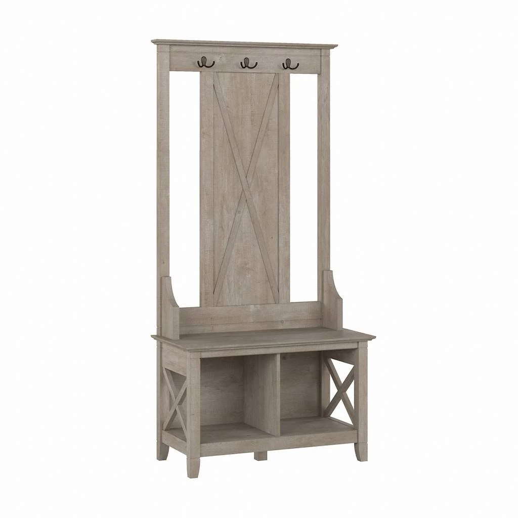 The Bush Furniture Key West Hall Tree with Shoe Storage Bench offers an entryway solution that gives your home a touch of casual style. Stop searching all over the house for your everyday essentials; this entryway organizer has space for shoes, outerwear and accessories so they’re right where you need them when it’s time to go. The Hall Tree includes three double-prong coat hooks for hanging jackets, hats, scarves and more. The durable Shoe Bench supports up to 250 pounds, so you can take a seat and relax while putting on or removing footwear. Stash your sneakers, boots and other shoes inside the open compartment underneath the Storage Bench to maintain a clutter-free mudroom. A post leg design and unique X pattern accents convey a casual appearance that works well with cottage, coastal and modern farmhouse style. Find the perfect look for any space with your choice of slightly distressed Washed Gray, Bing Cherry, Pure White Oak and Cape Cod Gray finish options. This entryway bench and hall tree set has been rigorously tested to meet Bush Furniture’s quality standards for safety, durability and performance and is backed by a 1 Year Manufacturer’s Warranty. See the full Key West Collection for coordinating items available, including storage, home office, and furniture.