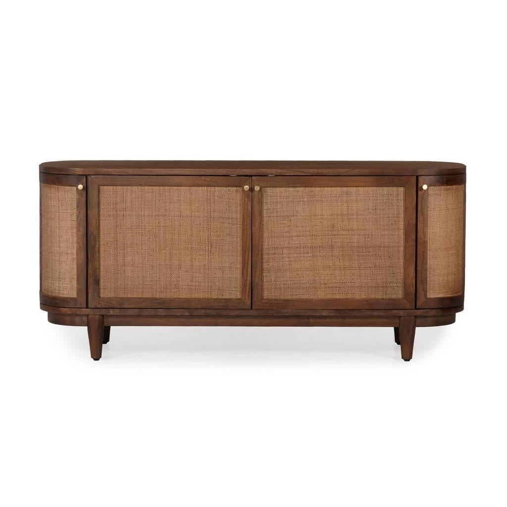 Our Canggu media stand embraces curvature. Rounded cane details create an inviting and robust piece for any room’s .