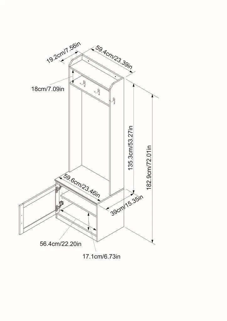 Dimensions: 23.375W x 15.375D x 72H
