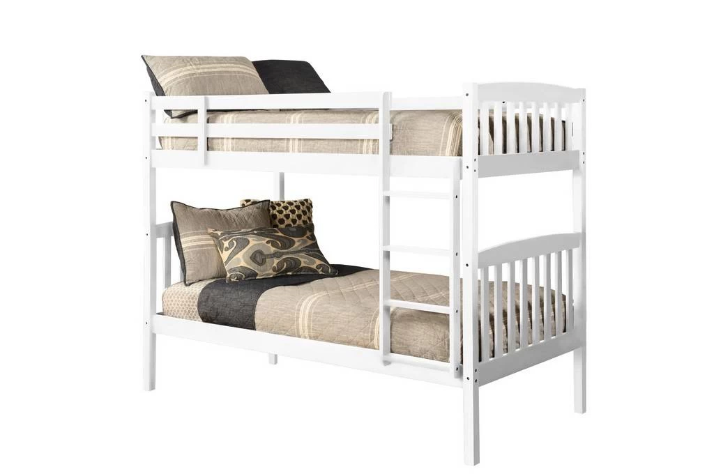 Strong, classic slat design and adaptability make this solid wood, twin-over-twin bunkbed the perfect choice for your home décor. The top bunk has a safety rail and a sturdy ladder to climb — ideal for your youngsters. This bunkbed is great for when you have children sleeping in the same room, but, you can split the bunkbed into two twin-sized beds.