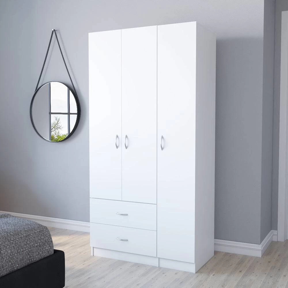The Clark Armoire is a beautiful piece that will help you store almost anything you will need and give your space a unique look. Amazing addition of space and storage for your room, five tall spacious Shelves for clothing and accessories, featuring a hanging rod, designed with White manufactured wood.