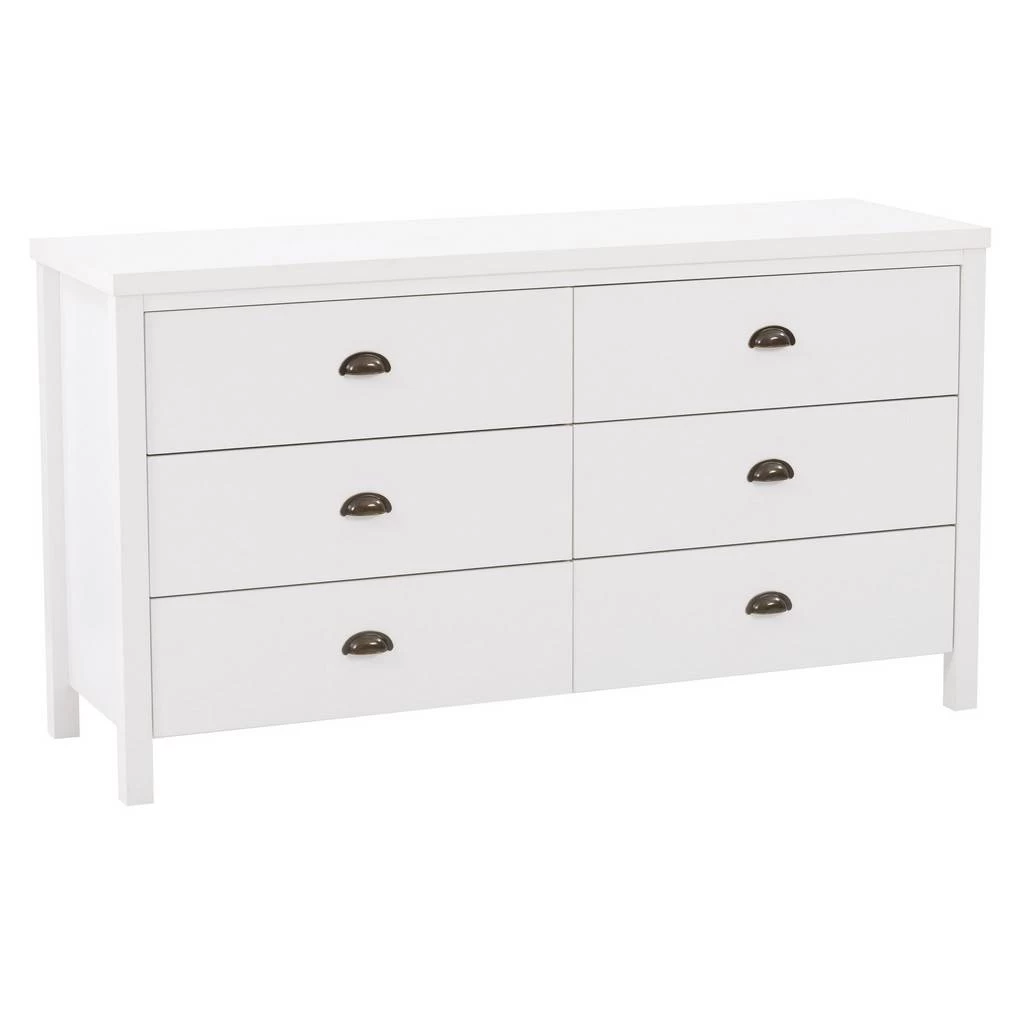 Classic lines with rustic details, the Boston six-drawer tall dresser is the perfect place to tuck away your belongings. A welcomed addition to any aesthetic, it showcases a clean-lined frame in a classic finish. Providing ample space for your belongings and wardrobe, the six drawers run smoothly on metal glides, and each one features a gunmetal cup pull handle. Add the matching dressers from this collection to complete your set.