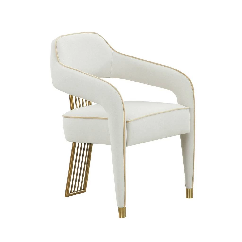 The Corralis chair is here to make a luxe statement with its elegant silhouette and art deco design. This stunning chair features a sturdy wooden frame upholstered in a comfortable linen fabric, supported and accented by a gold stainless steel base. This is the perfect piece to glam up your dining experience!