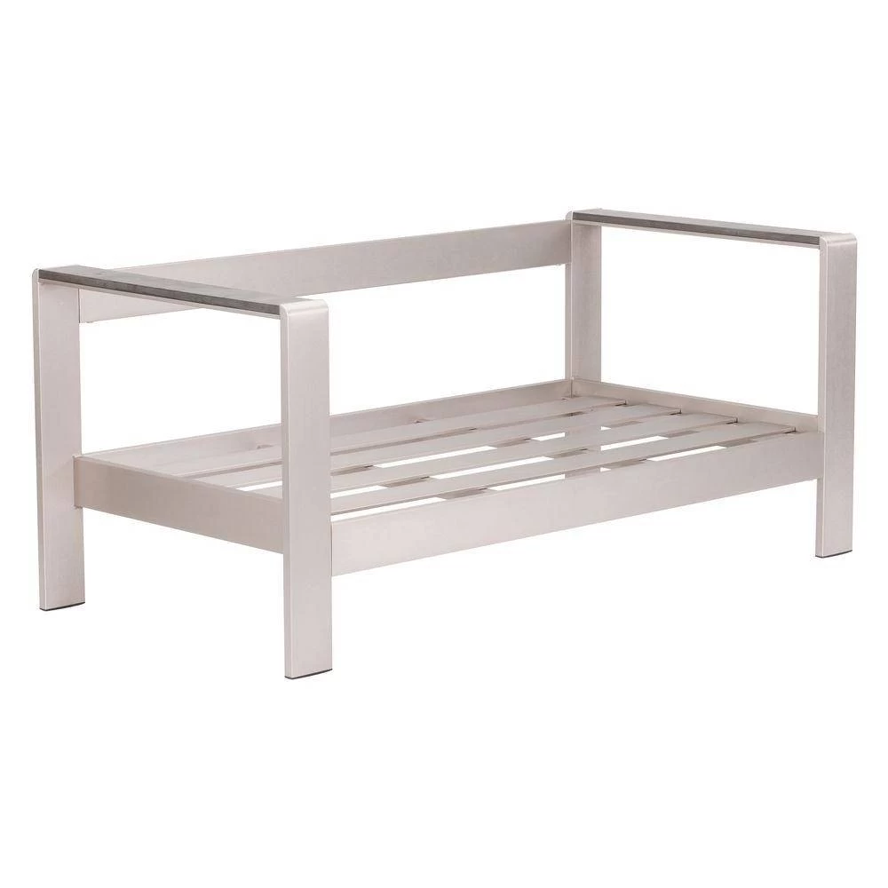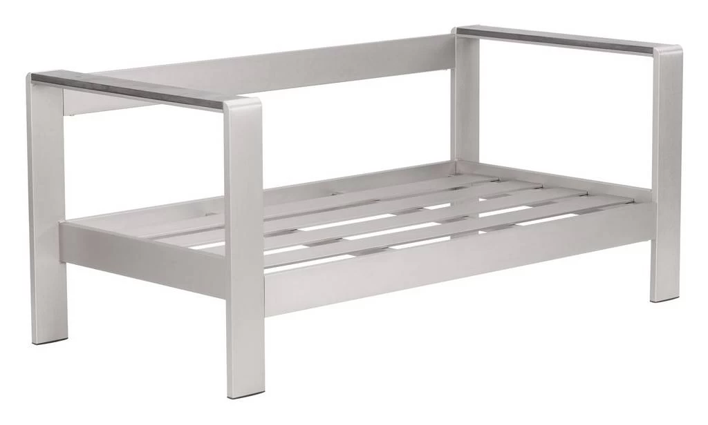 Simple Modern the Cosmopolitan features a sexy bold look to living with a aluminum frame accented with poly-wood to tops of each armchair or sofa frame. Collection includes sofa or armchair and sofa aluminum frame and either orange or green cushions. Sold Separately.