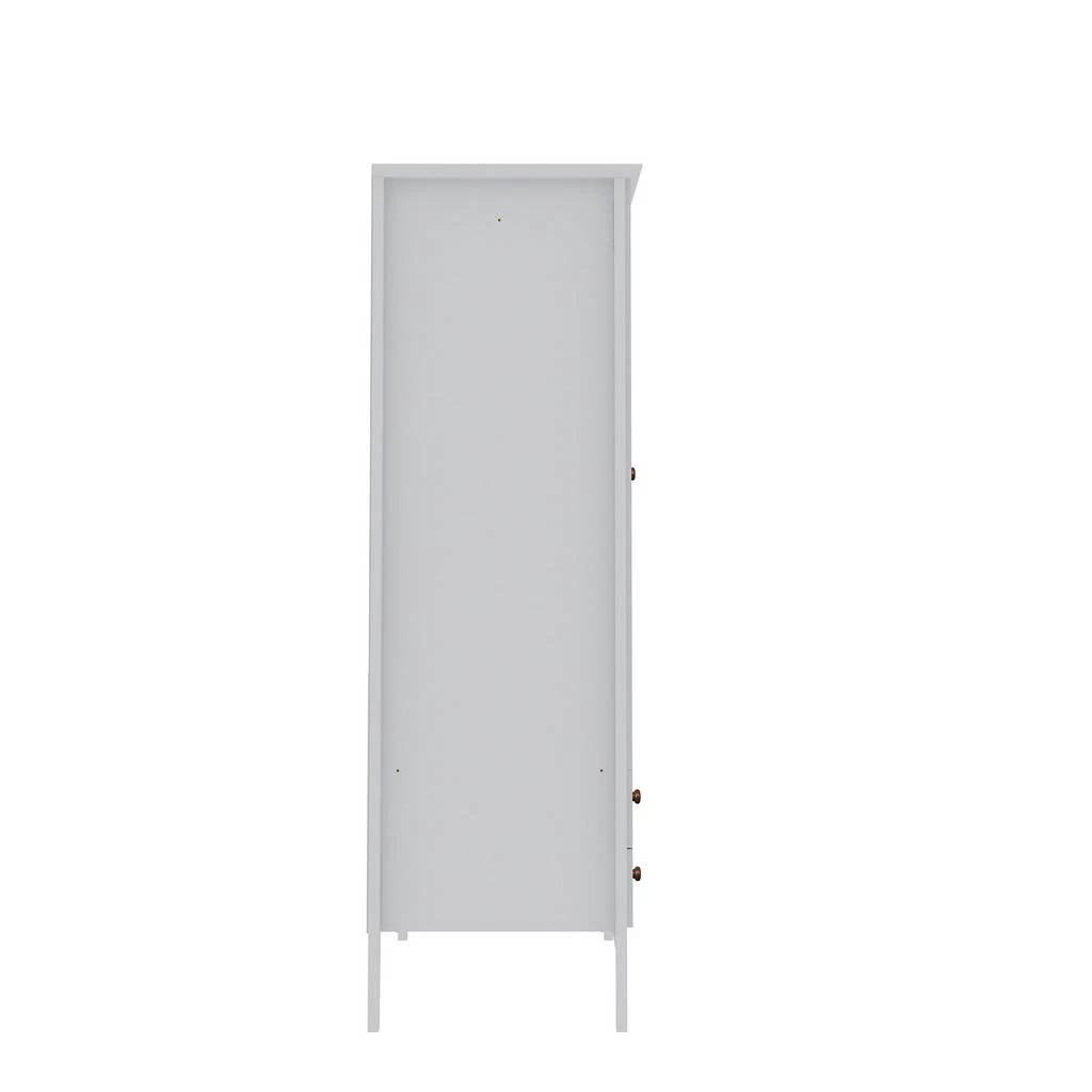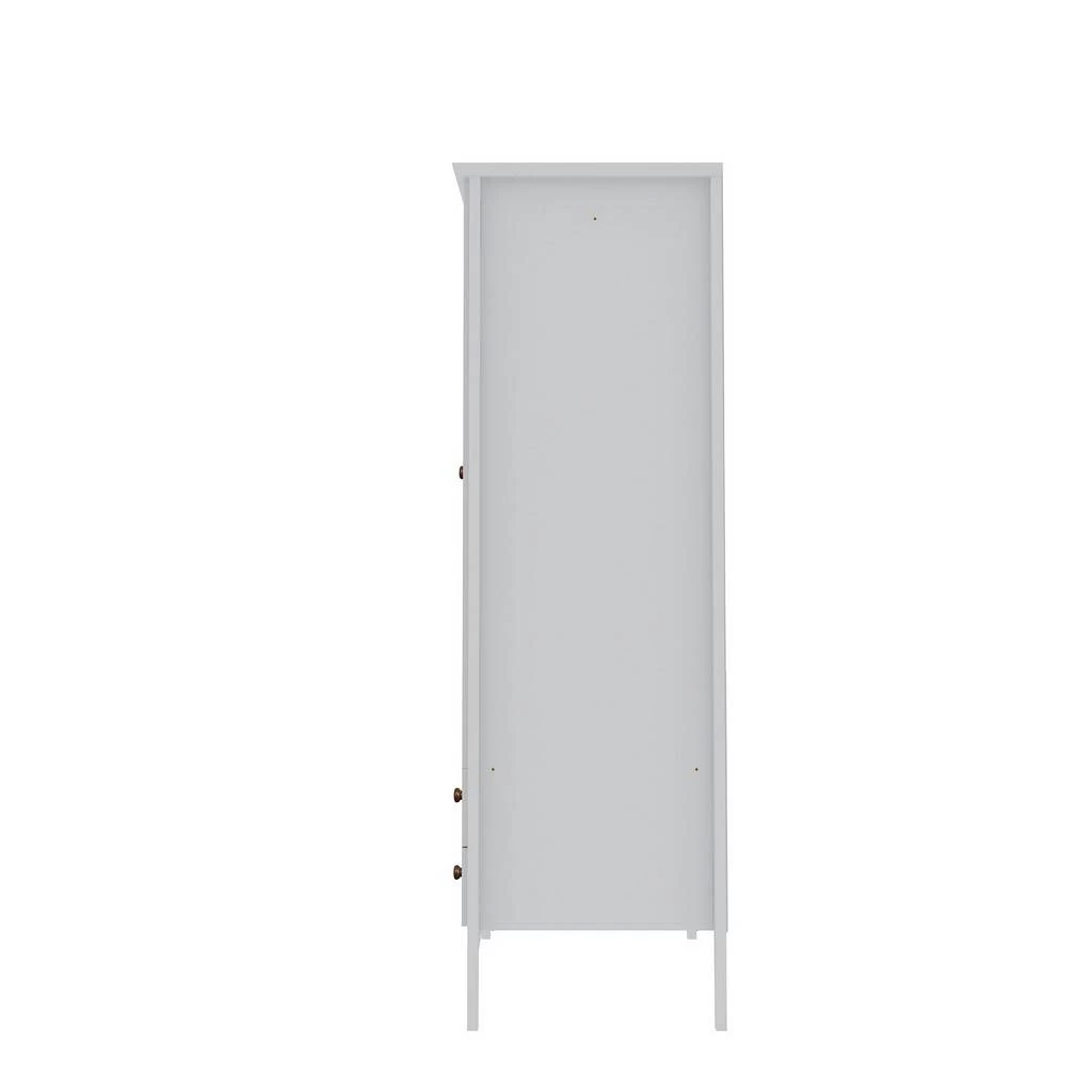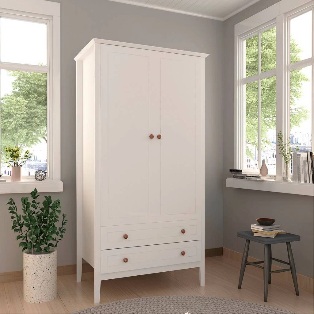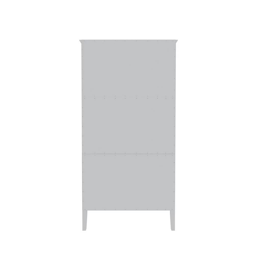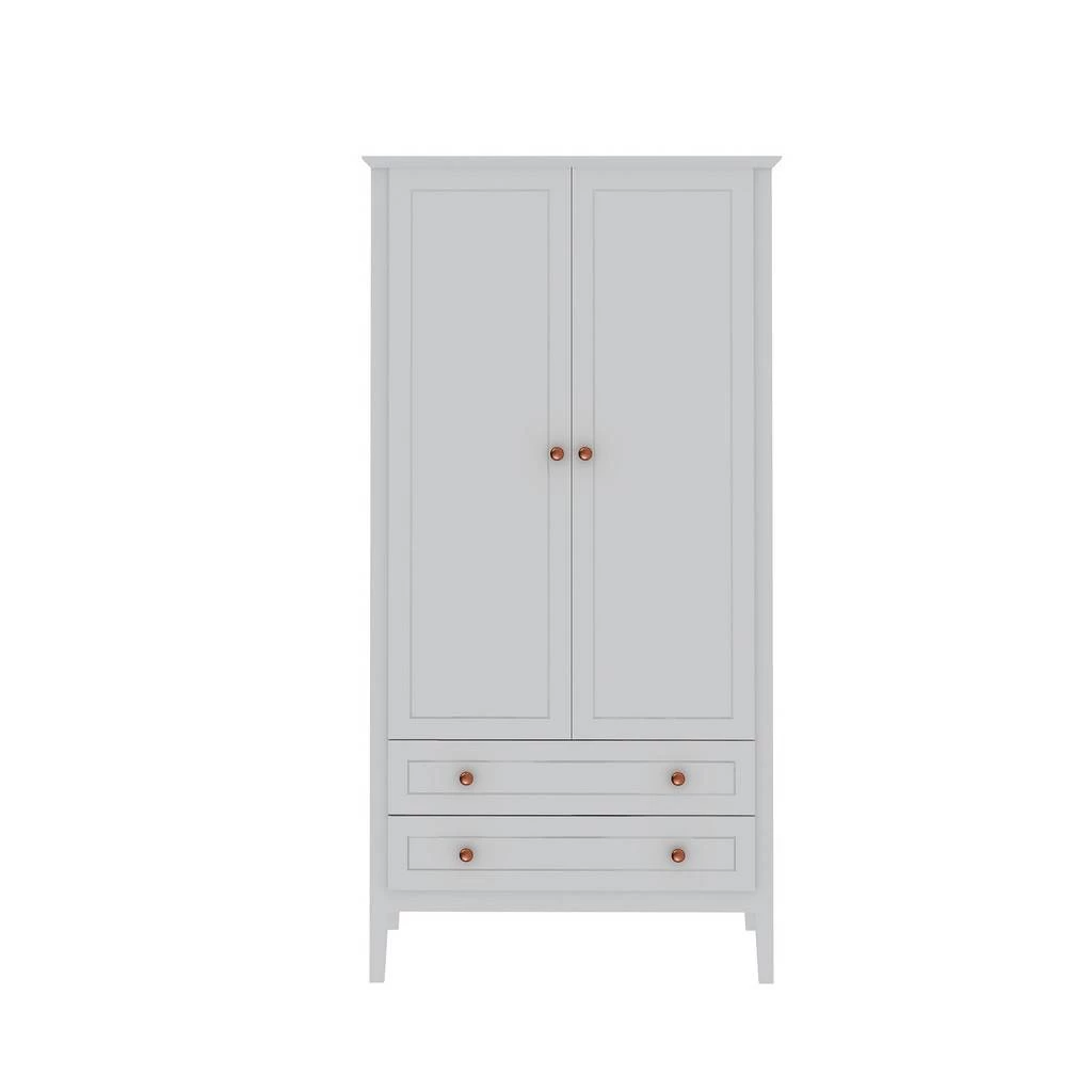The Crown Freestanding Armoire combines style and convenience for all your clothing storage needs. This Armoire is the perfect solution to furnished condos, lofts, studios, guest’s rooms and home offices. The Crown brings multi-functionality to a single room, with 1 overhead shelf, a long hanging space, and 2 drawers for versatile and common closet style storage. Delicately finished with beautiful round rose gold tinted knobs, to give an elegant glam essence to this modern piece.