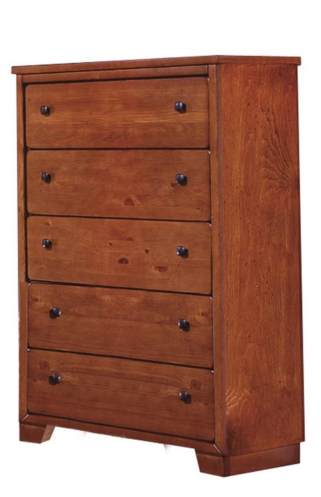 Diego features simplistic cases with linear detail allowing the architectural lines to create interest. Chest features a multi-step Cinnamon Pine finish. Metal on metal positive stop drawer guides. Solid Pine drawer interiors. Dark antique brass square hardware.