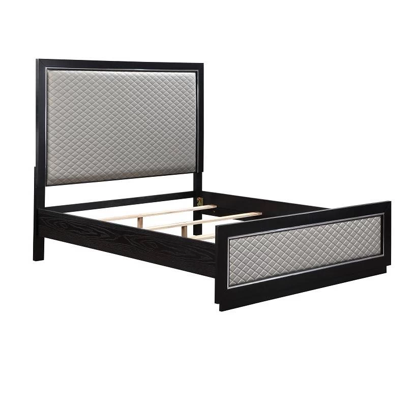 ACME Nicola Eastern King Bed, Silver PU & Black Finish