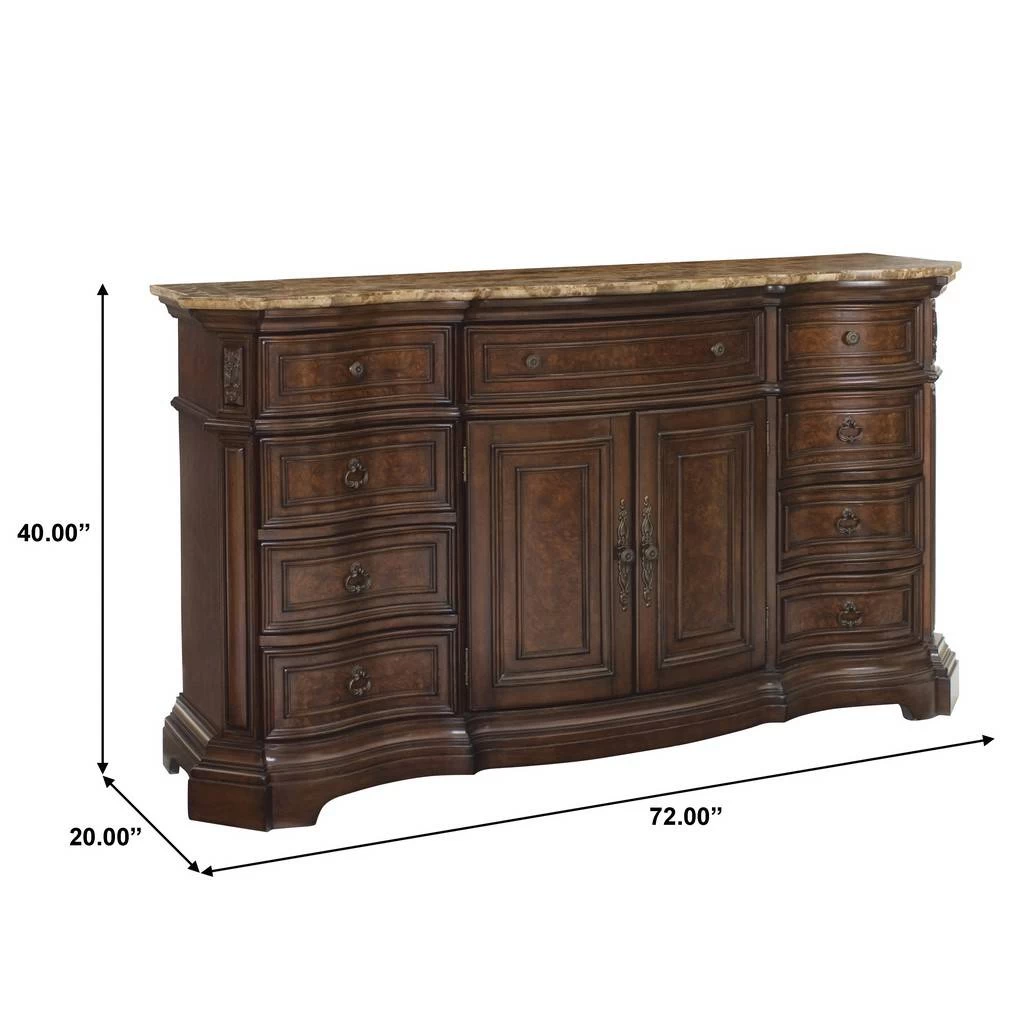 Edington is an elegant European Traditional influenced collection that evokes the tradition and romantic essence of the countryside with its refined details and elegant styling. Grandly scaled with an abundance of well considered details, it hints an airof antiquity but the styling is thoroughly fresh and new. The dresser is grand in scale and offers more than enough storage with nine drawers and two doors to hide away clothing. It’s finished with a marble stop that adds a sleek natural element to thecollection.