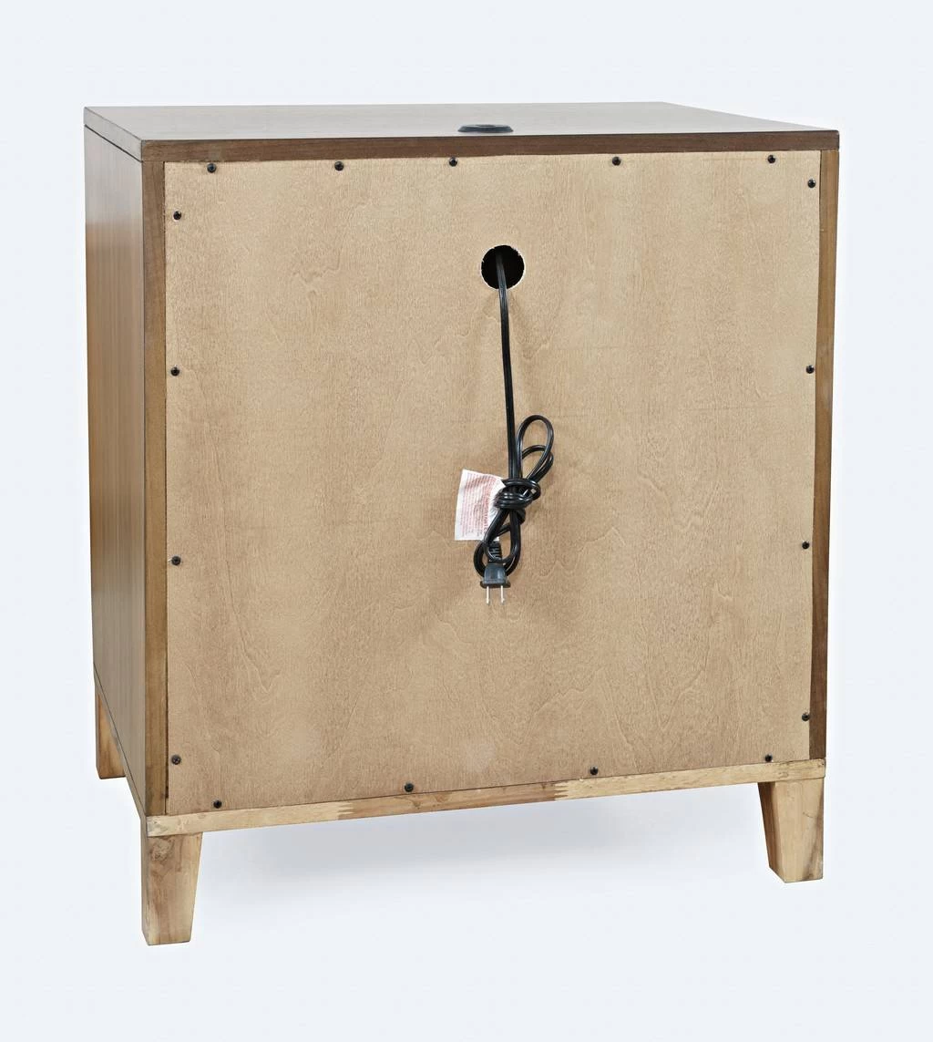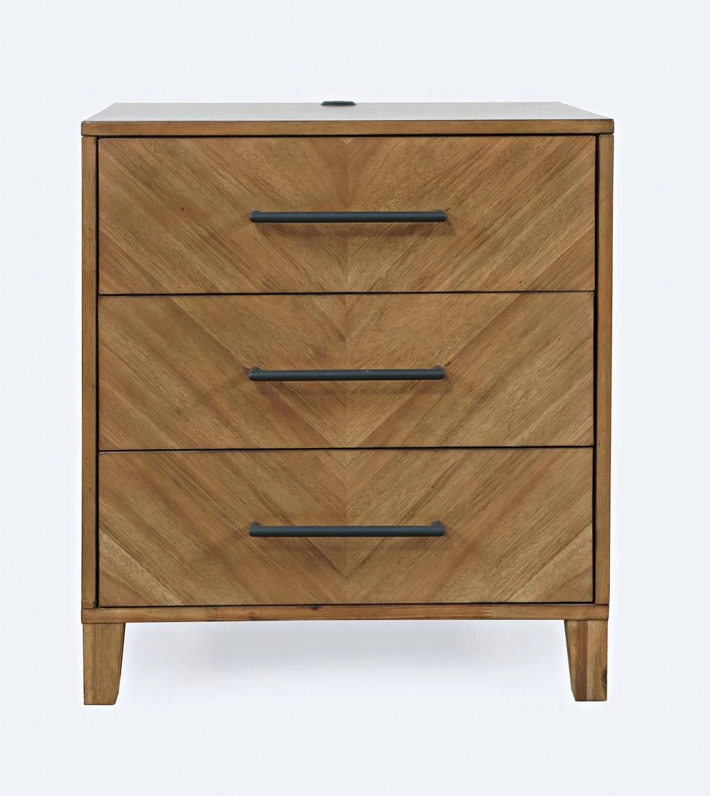 Stunning contemporary modern design with a sophisticated angled style and a built-in USB Charging station, this Eloquence Nightstand pairs the beauty of natural wood grain with a simple pre-assembled design perfect for a new addition to your . This Nightstand arrives ready to use, with two built-in USB ports on top for powering all your devices and three drawers with plenty of storage.