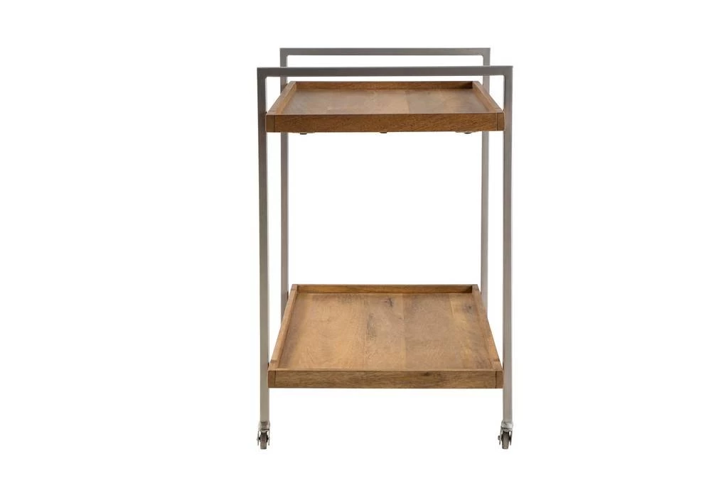 Create craft cocktails while entertaining friends with the stylish and versatile Gensler bar cart. The top provides ample surface space for drink preparation, and the bottom shelf is perfect for storing decanters. The distance between shelves is 20”, so tall bottles will fit with ease. Four (4) rolling casters allow this trolley to move effortlessly within your home: just wheel into your or dining room for cocktail hour or after dinner drinks. The serving cart is also ideal for holding coffee and tea supplies, plants and decorative accessories, or kitchen overflow storage. This bar cart features a combination of metal and solid wood materials, with clean lines and minimalistic design elements that give it a modern touch. Mango wood features beautiful hues and unique wood grain, which may lead to slight variations.