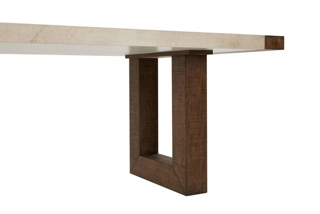 With its two-tone finish and sharp silhouette, this dining table features natural elements in a clean, modern design. The simple aesthetic showcases unique figuring and natural warmth of real wood, making this handsome piece ideal for most styles.