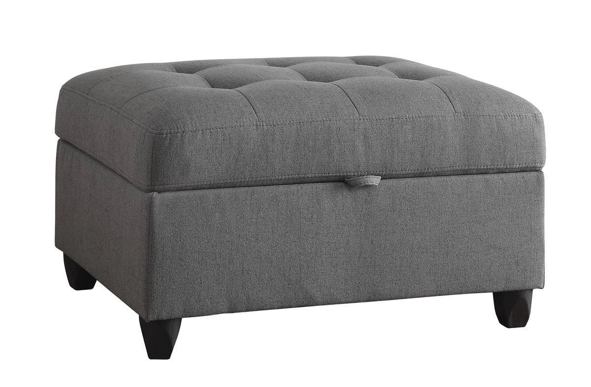 This ottoman features a tufted cushioned seat and plenty of interior storage space for all your clutter.