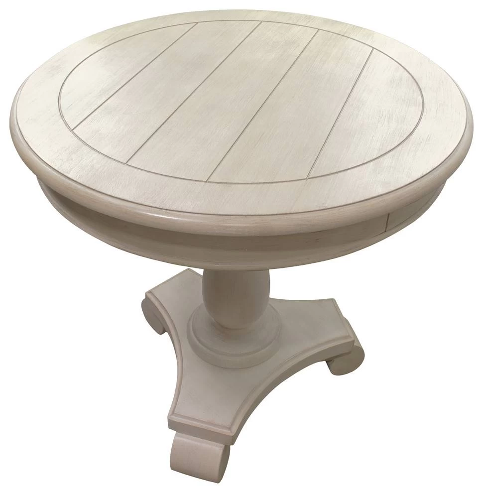 Compliment your living room or with this gorgeous round end table. Its simple design and color makes for easy matching. With a 26 x 26 round table top, it’s perfect for vases, family photos, and books that can be combined with other memorable trinkets.