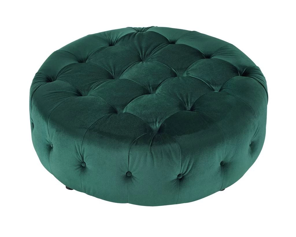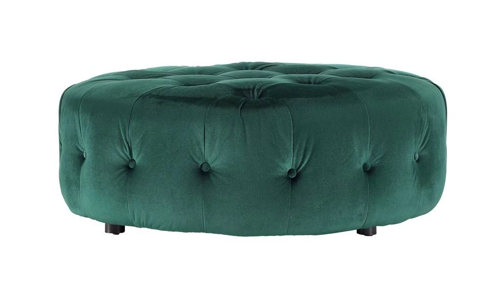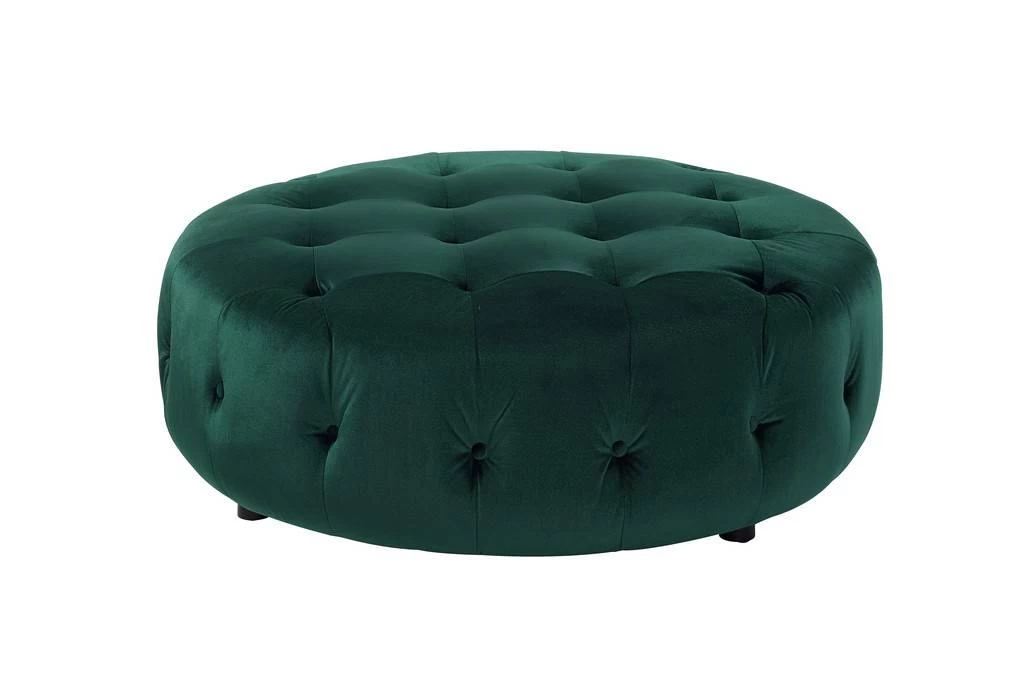 The hard edges and the all around tufting of this ottoman combine for a unique look that is both modern and rustic. With the help of a tray (not included) this item is as much a coffee table as it is an ottoman. Seat height is 16″.