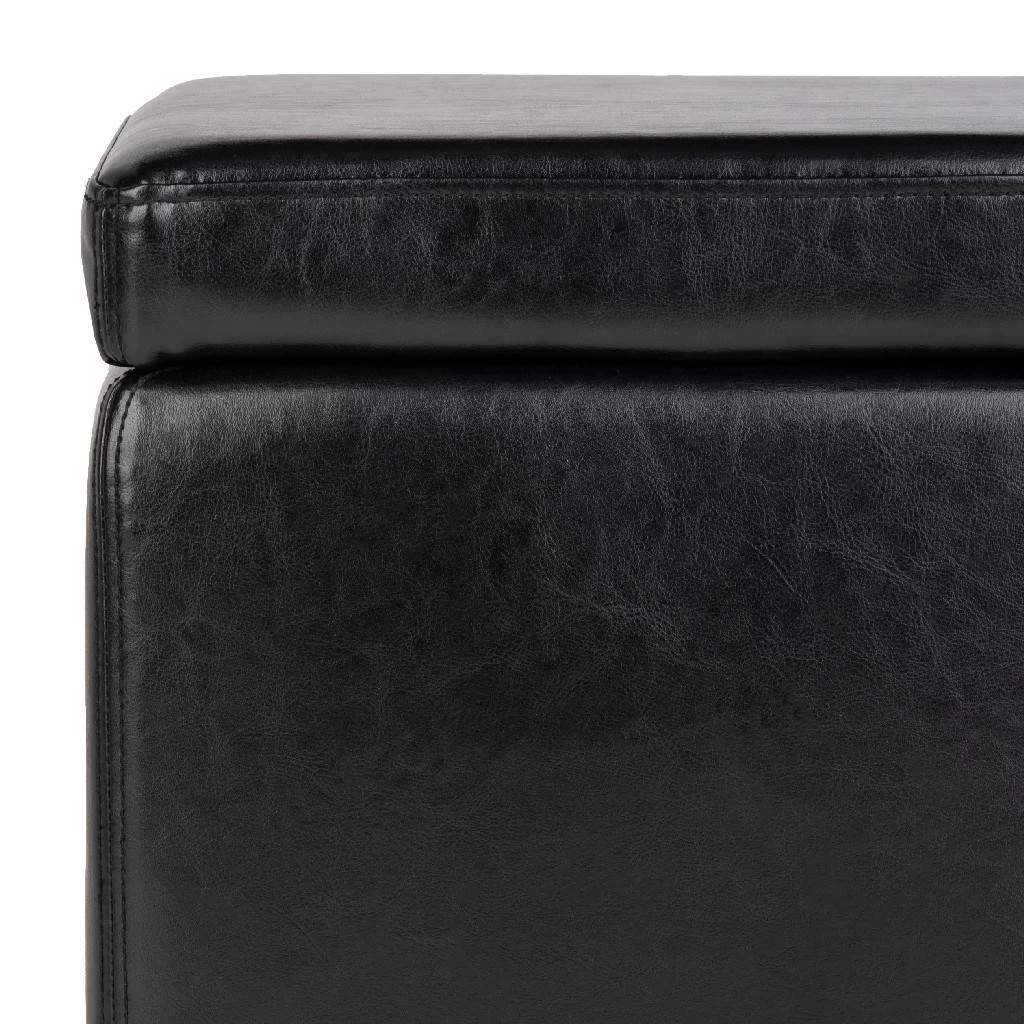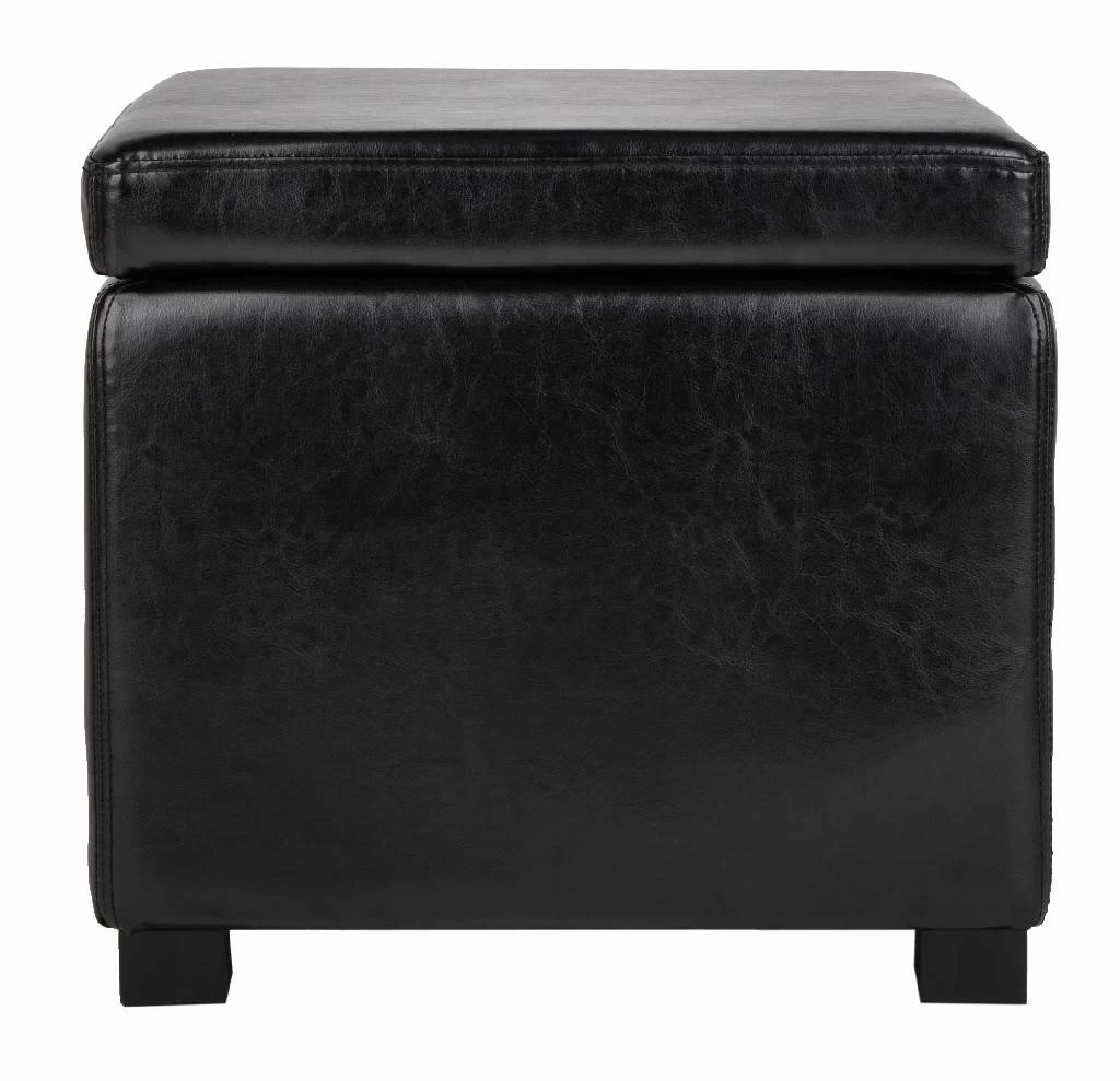 You’ll flip. The soft modern style of the Jonathan Flip Top ottoman brings form and function to any room with its hinged top for handy access to items you’ve stowed inside. Crafted with sumptuous black bicast leather and black beech wood legs, it’s a study in handsome contemporary design.