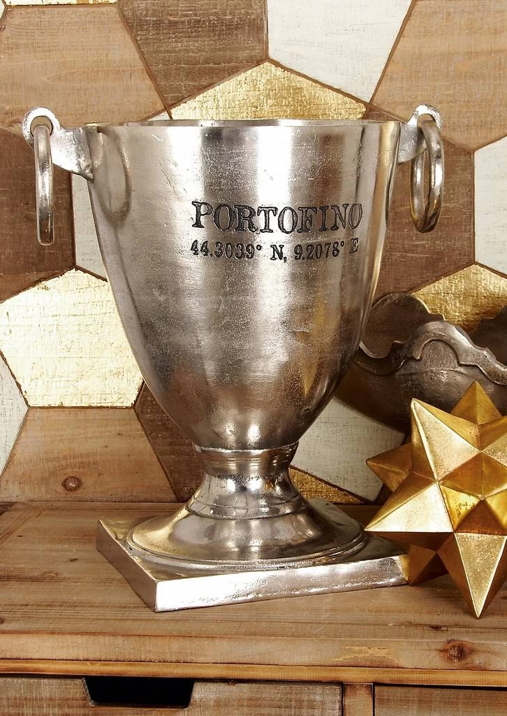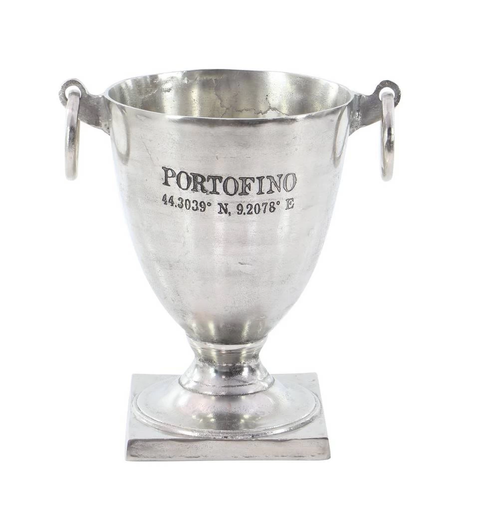 Display your wine bottles with style and make everyone thirsty with envy. Looks stylish in your or kitchen as a way to display and serve your favorite wines. Feel the chill of this wine cooler in your contemporary home if you have this in your living room or dining room. This item comes shipped in one carton. Suitable for indoor use. Made in India. It has the word “PORTOFINO” and its map coordinates. Contemporary design.