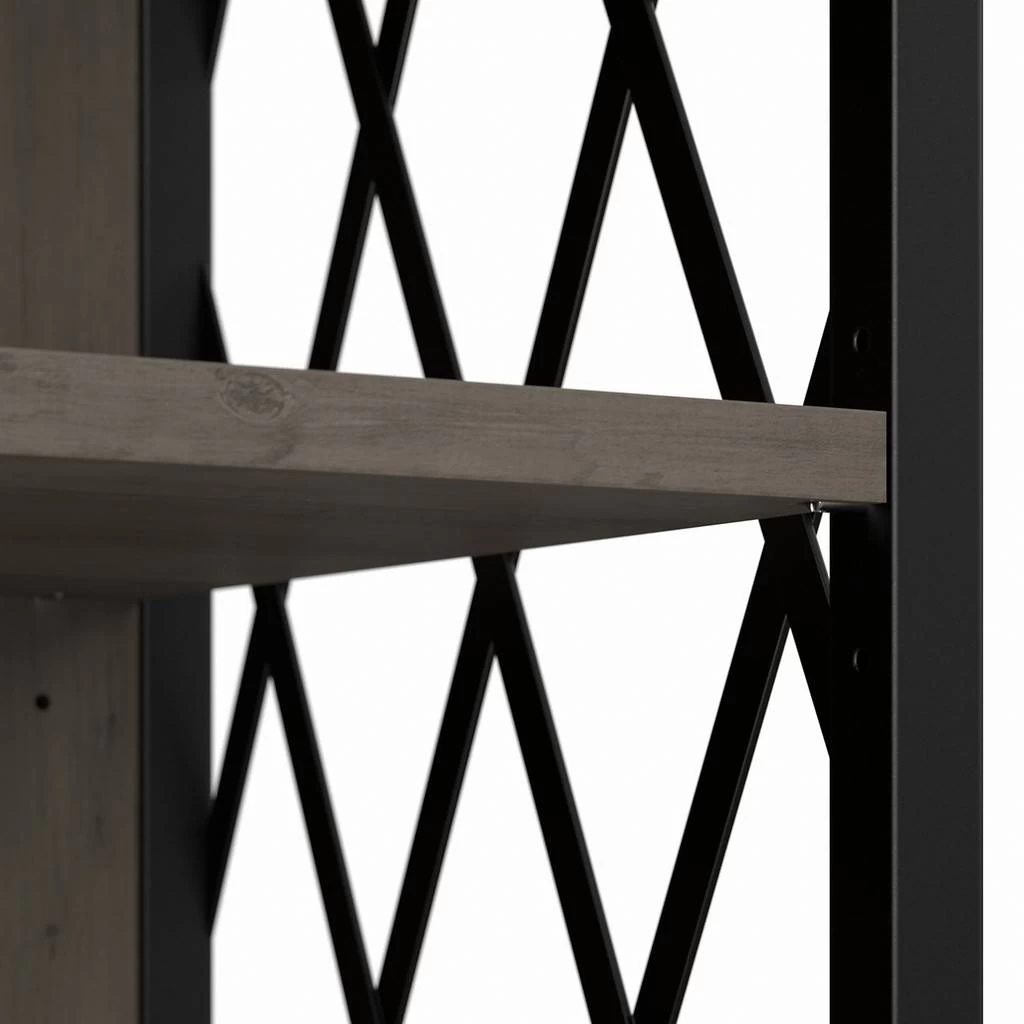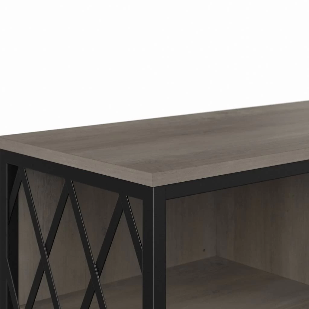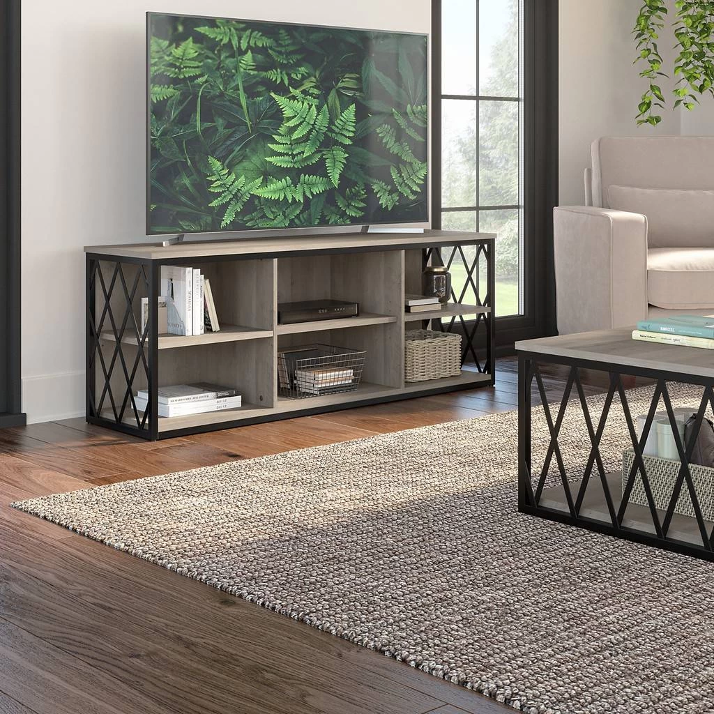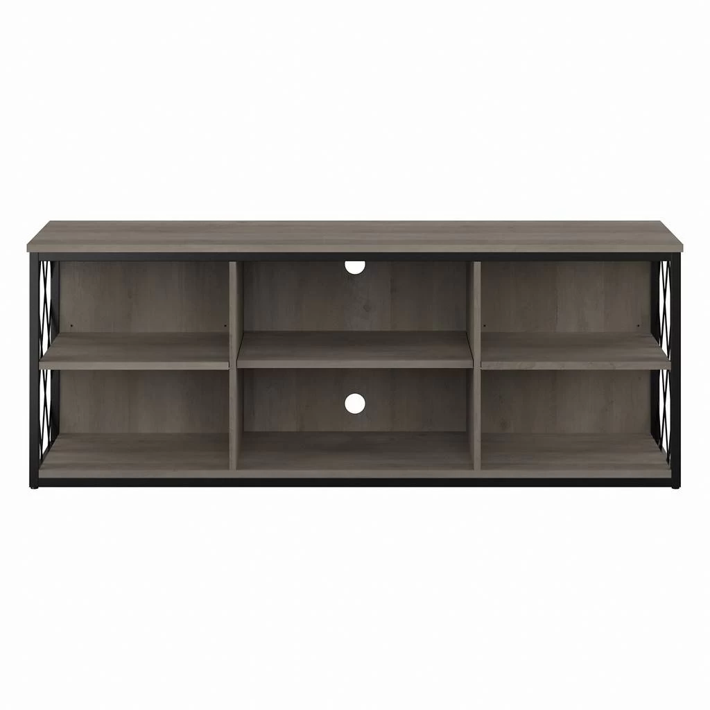 The kathy ireland Home by Bush Furniture City Park 60W Industrial TV Stand for 70 Inch TV is the ideal statement piece for your movie nights. Designed with your safety in mind, this media unit includes a stable design, a counterweighted back panel, and wall attachment hardware for family-friendly safety. The rustic finish and decorative harlequin pattern work together to create a modern industrial look in any or loft-style home. Catch up on your favorite shows with a TV console that supports up to a 70 inch television and/or 80 pounds. The three adjustable shelves allow for flexible storage of your video games, DVDs, and more. Easily conceal and organization wires from your electronics thanks to the cable management cut outs on the central back panel of the entertainment stand. Use the open storage for your larger gaming consoles and media players, and rest easy knowing that your television and accessories are safely supported thanks to the durable metal frame. This modern TV stand is tested to meet ANSI/SOHO quality standards for safety and performance and is backed by a 3 Year Manufacturer’s Warranty. Complete the look of your living room by coordinating the media console with the City Park Bookcase, Console Table, or Coffee Table (coordinating items sold separately). See the full City Park Collection for a variety of coordinating items to create a cohesive in your home.
