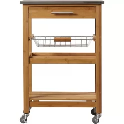 Aya Bamboo Kitchen Cart, Stainless Steel Top .. – Boraam Industries 50651
