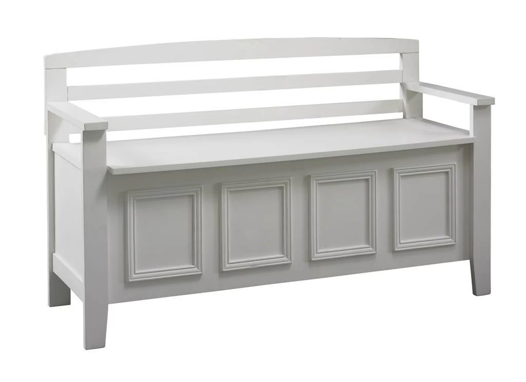 Create added seating and storage to your foyer or mudroom with this attractive and functional Laredo Storage Bench. The bench features a flip top lid, allowing the user to easily retrieve articles from the storage compartment. The ladder designed back and decorative front are enhanced by the white finish. A stylish and functional addition to any home.