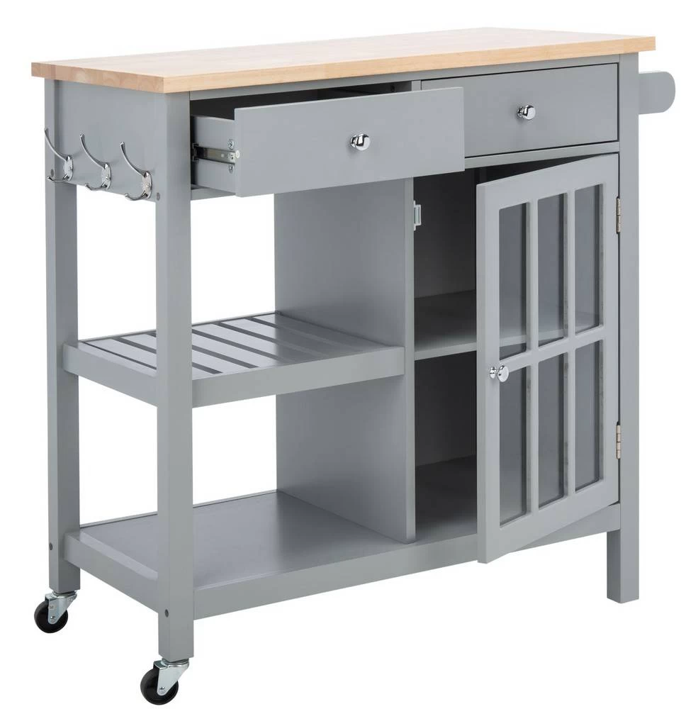 Effortlessly emanating warm country charm, this Locklyn Kitchen Cart is the perfect meeting of form and function. Two drawers provide ample space for cutlery while two shelves and one door easily hold spices or drinkware, making Locklyn a must-have for the busy kitchen.