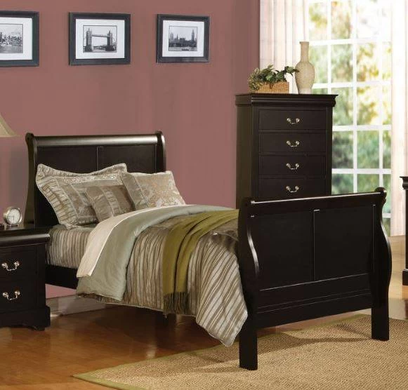 The Louis Philippe III collection brings traditional style details from its sleigh beds, featuring KD headboard, and footboard. Crafted with selected wood and veneers is available in different finish to choose from antique gray, black, cherry and white finishes. This beautiful collection will be the perfect complement for your . Bed only, each piece in collection is sold separately.