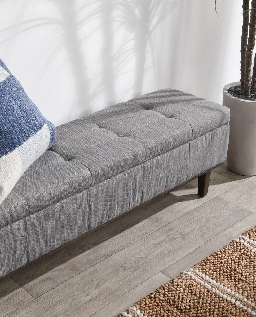 Elegantly appointed with tufted upholstery and a contrasting wood frame, this bench makes a chic addition to any space. Interior storage makes this piece a versatile yet stylish solution for a , entryway, or office.