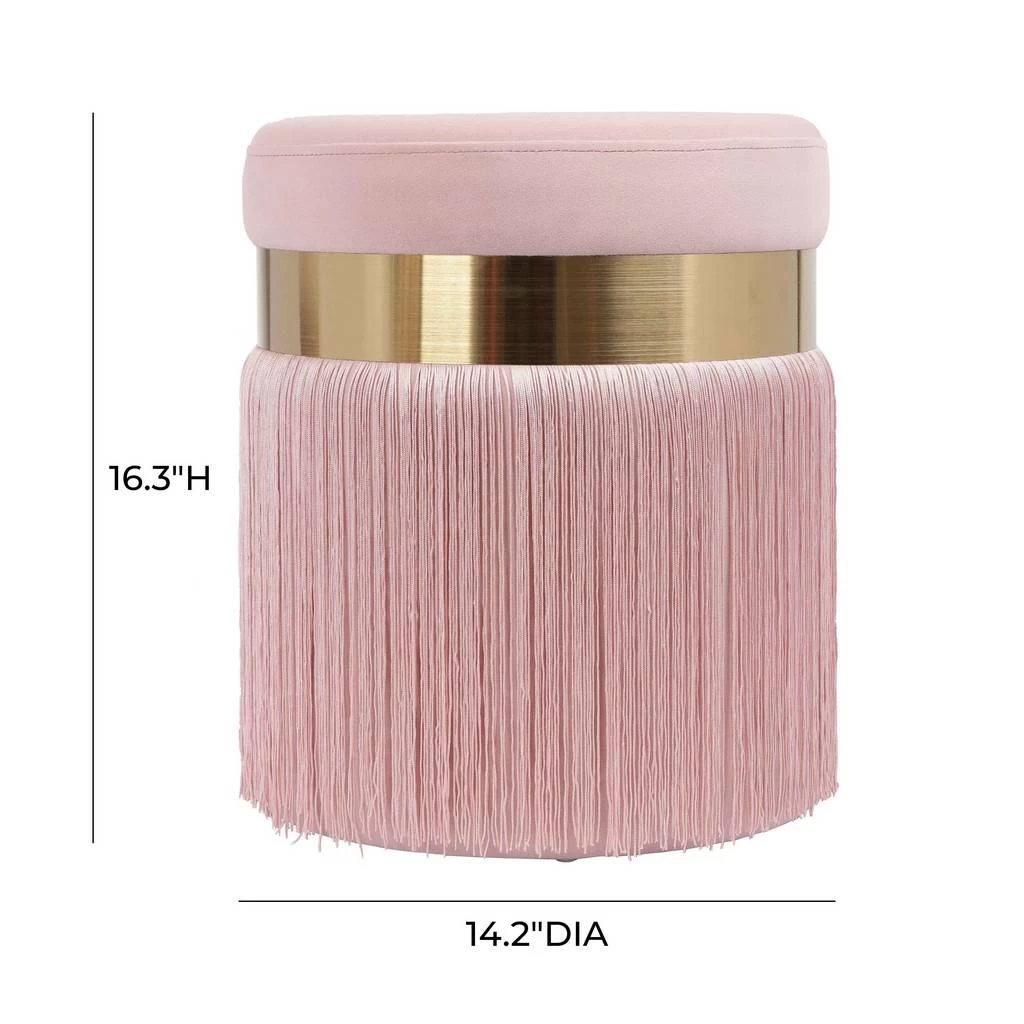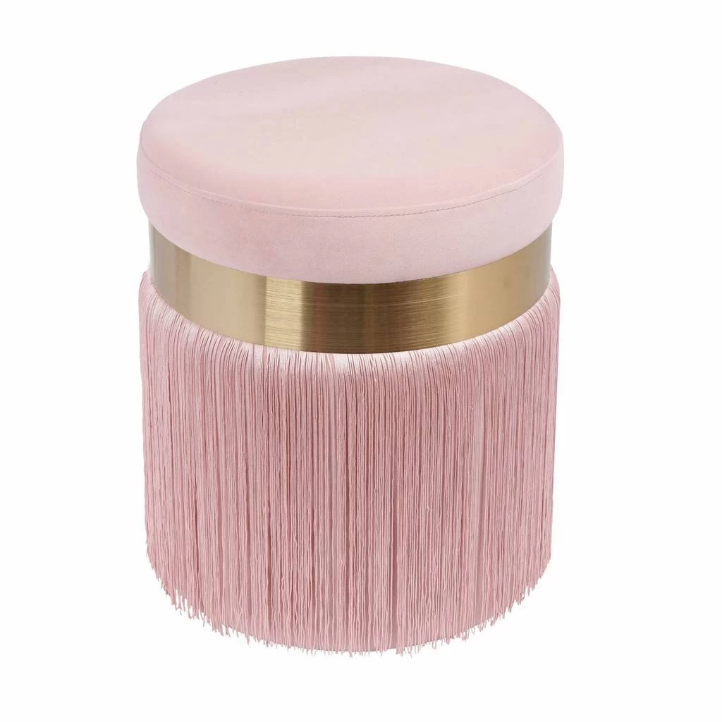 In true grandmillennial style, the Melody ottoman takes the granny chic look to a whole new level. We love how soft velvet, brushed brass and a luxurious fringe pair together. Available in black, blush and cream.