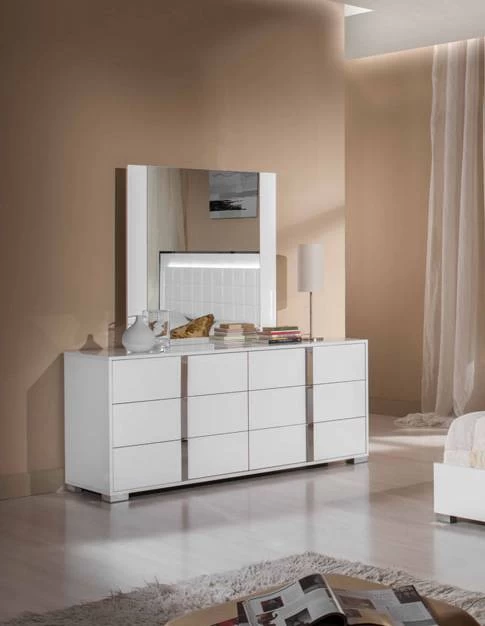 The Modrest San Marino Modern White Dresser showcases delicate charm featuring white glossy finish and a self-closing drawer system. It comes with 6 spacious drawers with aluminum handles providing accent. This fully assembled made in Italy modern dresser has a dimension of W66″ x D19″ x H30″.